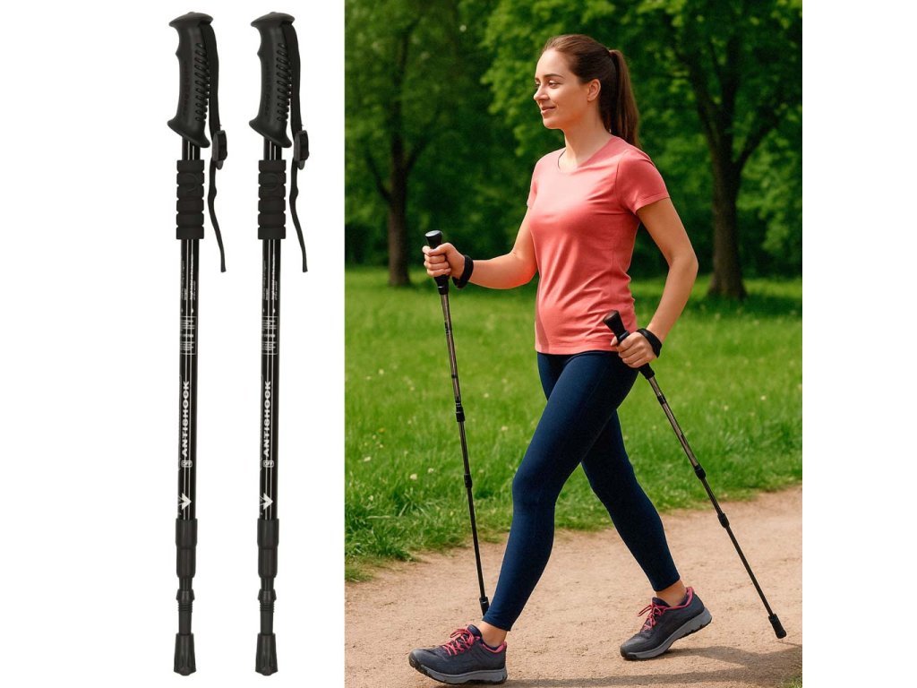 NORDIC WALKING - TREKINGOVÉ HOLE S NASTAVENÍM DÉLKY - 2 KS ČERNÉ