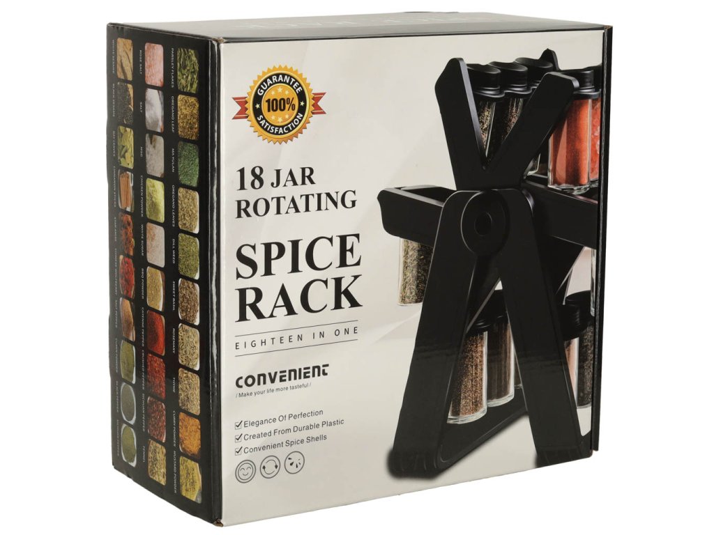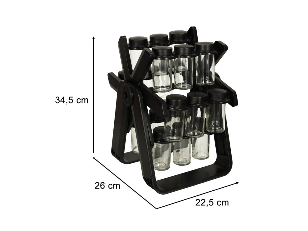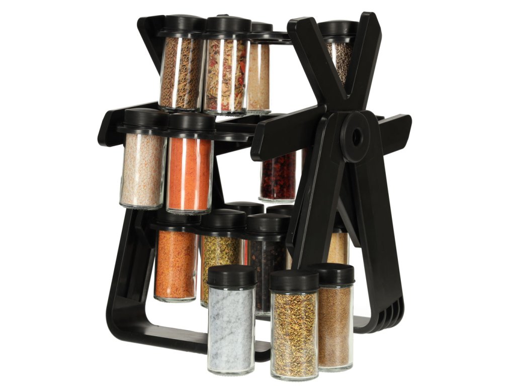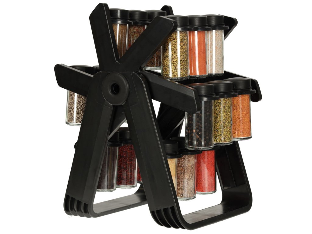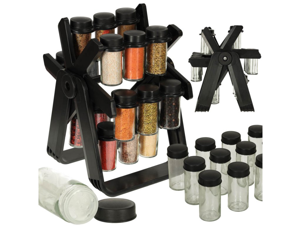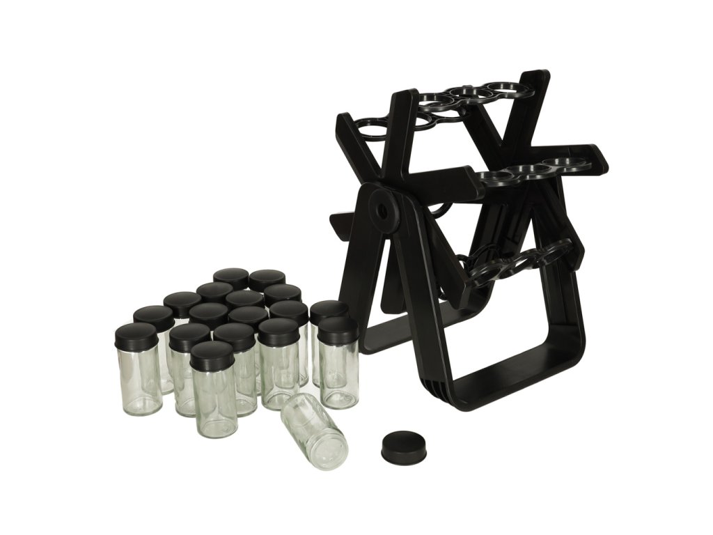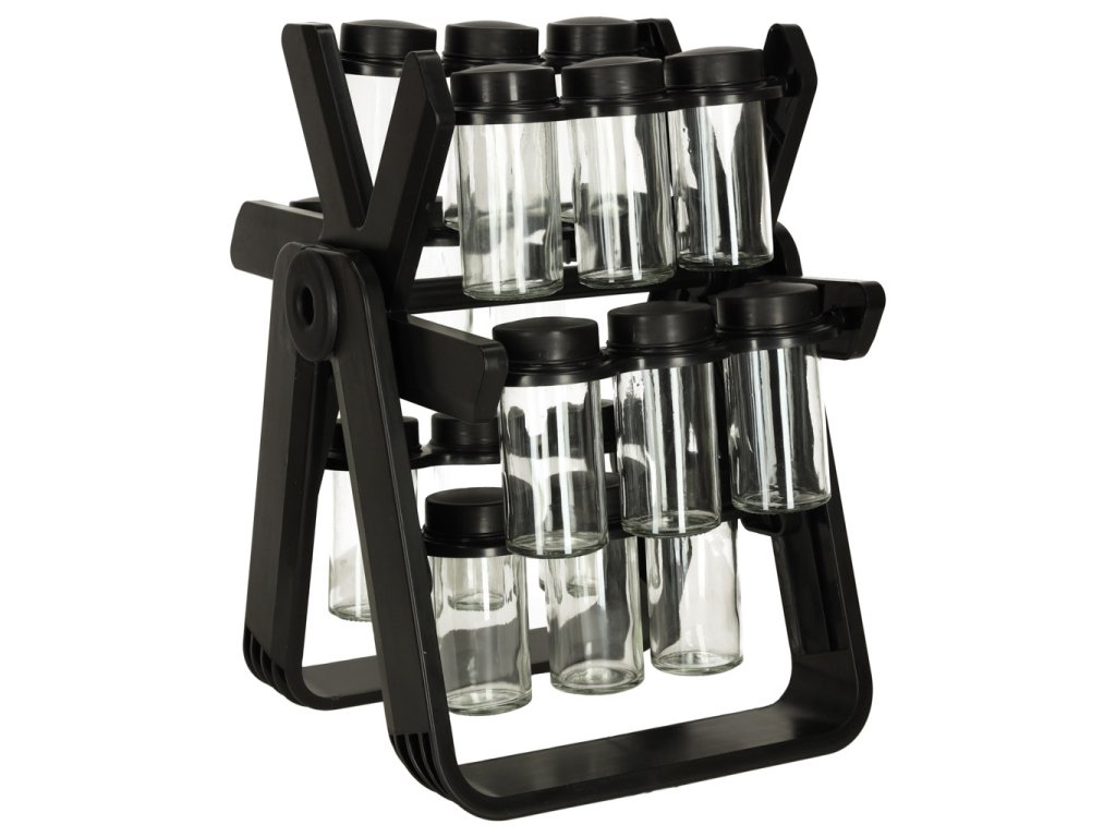 Stojan na koření udržuje pořádek v mnoha baleních koření. Díky 18 skleněným nádobám se šroubovacími uzávěry a robustnímu stojanu budetemít všechno své oblíbené koření vždy po ruce, což vám výrazně usnadní přípravu chutných pokrmů. Díky svému modernímu designu bude stojan na vaší kuchyňské lince vypadat krásně.