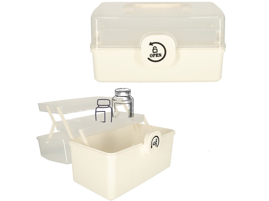 Díky výsuvnému mechanismu, který se skládá z pohyblivých přihrádek, je navíc uspořádání léků velmi snadné. První přihrádka, která je nejrychleji přístupná, bude ideálním místem pro všechny předměty potřebné při poskytování první pomoci. A třetí a největší přihrádka bude ideálním místem pro uložení větších předmětů a balíčků s léky.