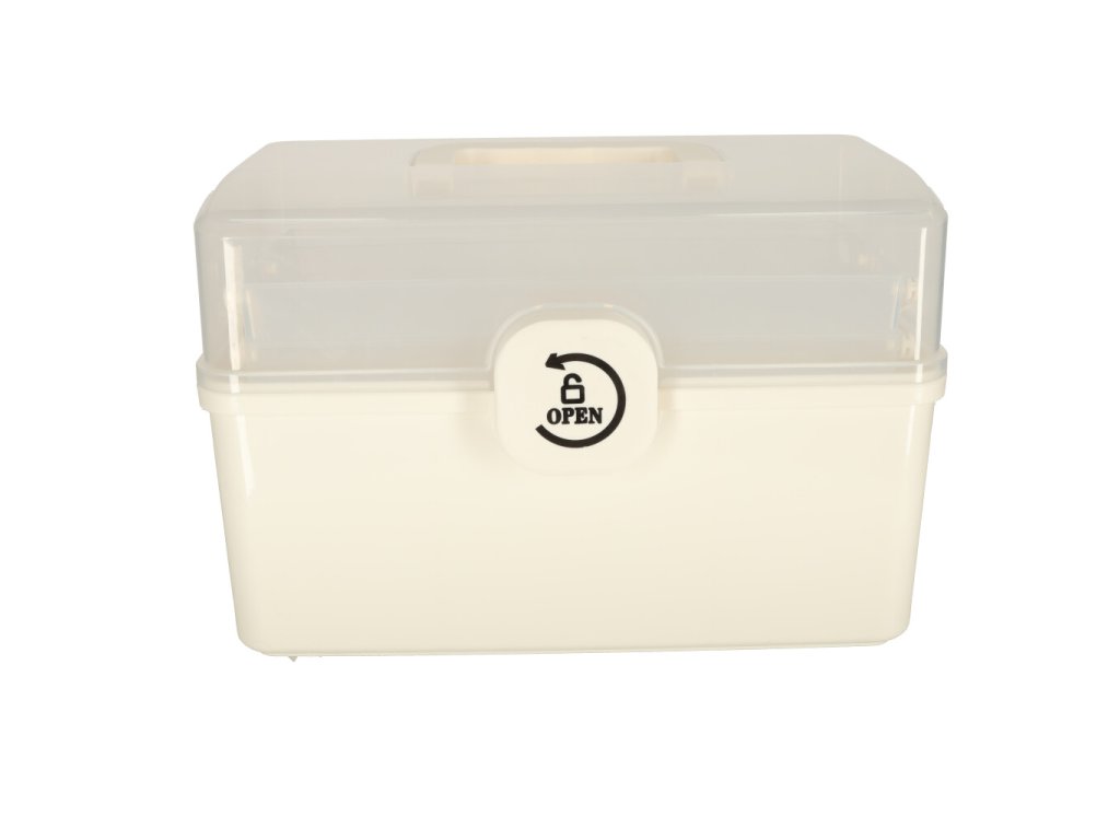 Naštěstí existuje způsob, jak to obejít - velký kontejner na léky! Díky správným rozměrům (34 x 19 x 22,5 cm) se do ní vejde opravdu hodně zdravotnických prostředků všeho druhu.