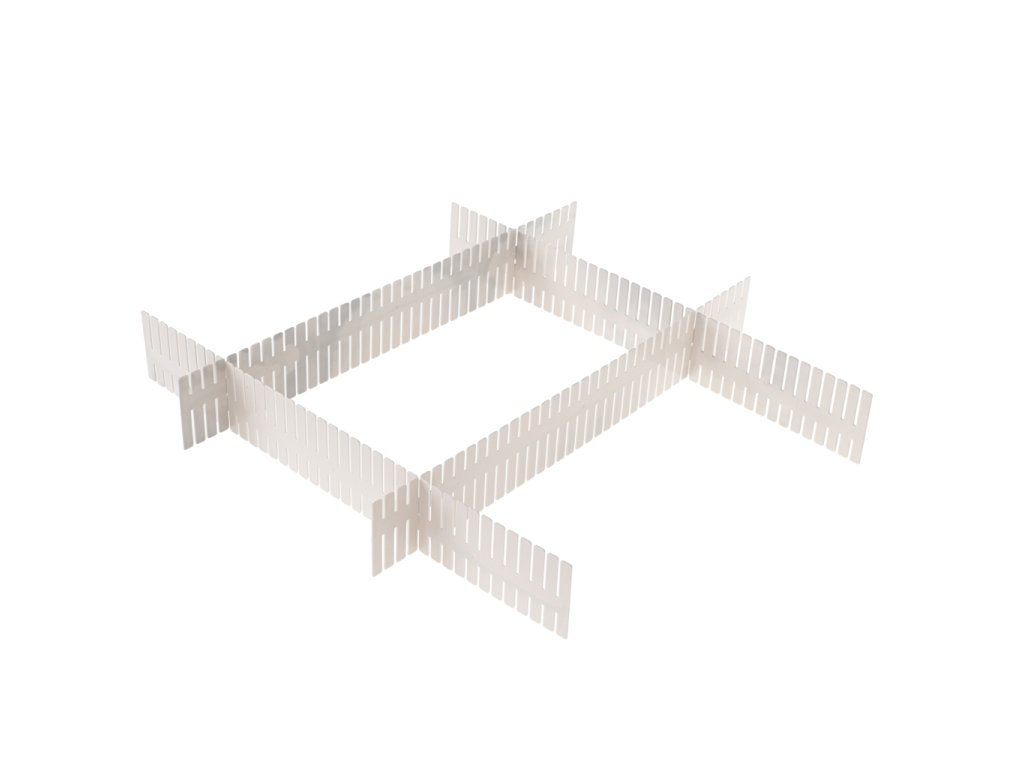 Vysoce kvalitní plast zaručuje dlouhou životnost výrobku. Četné zářezy zajišťují stabilitu konstrukce. Snadné přizpůsobení přepážek vašim potřebám vám dává možnost vytvořit nové uspořádání přepážek nebo je znovu použít v jiném prostoru.