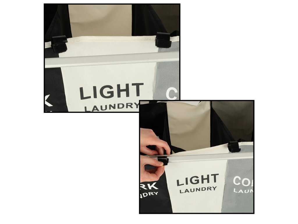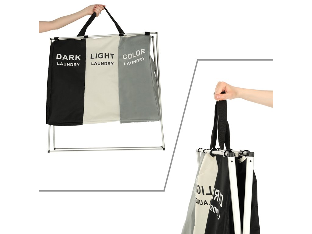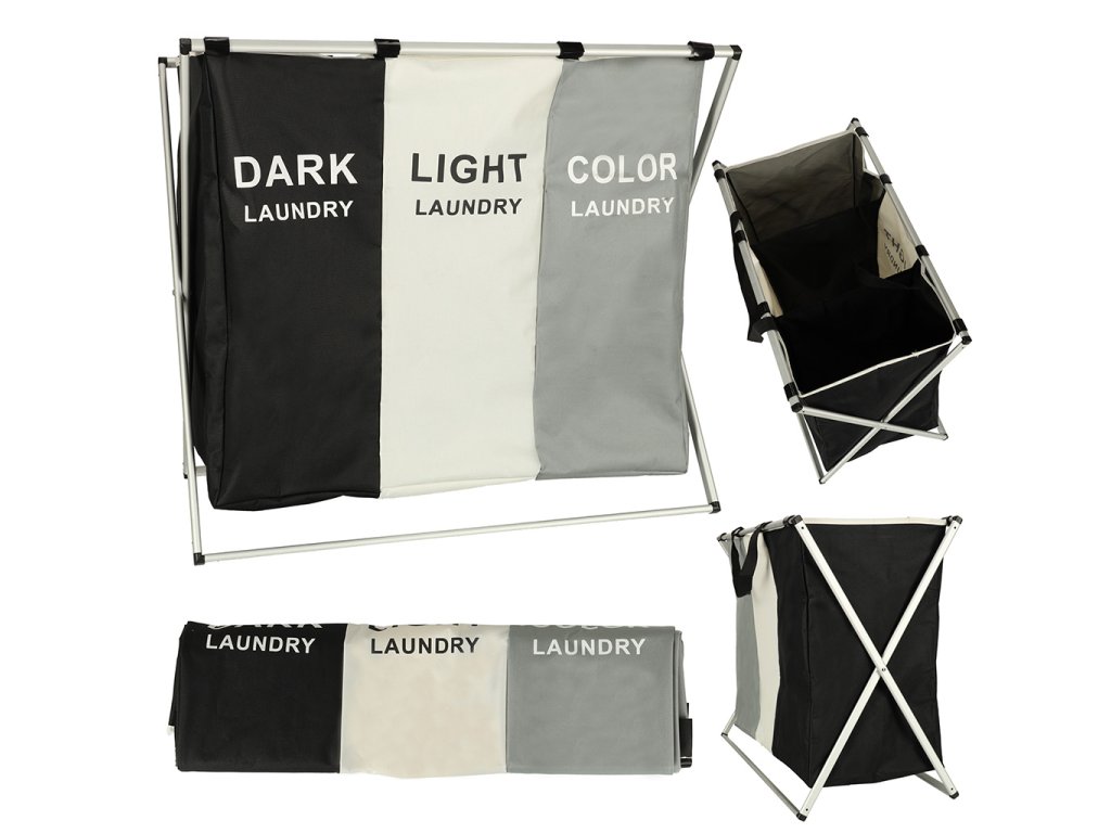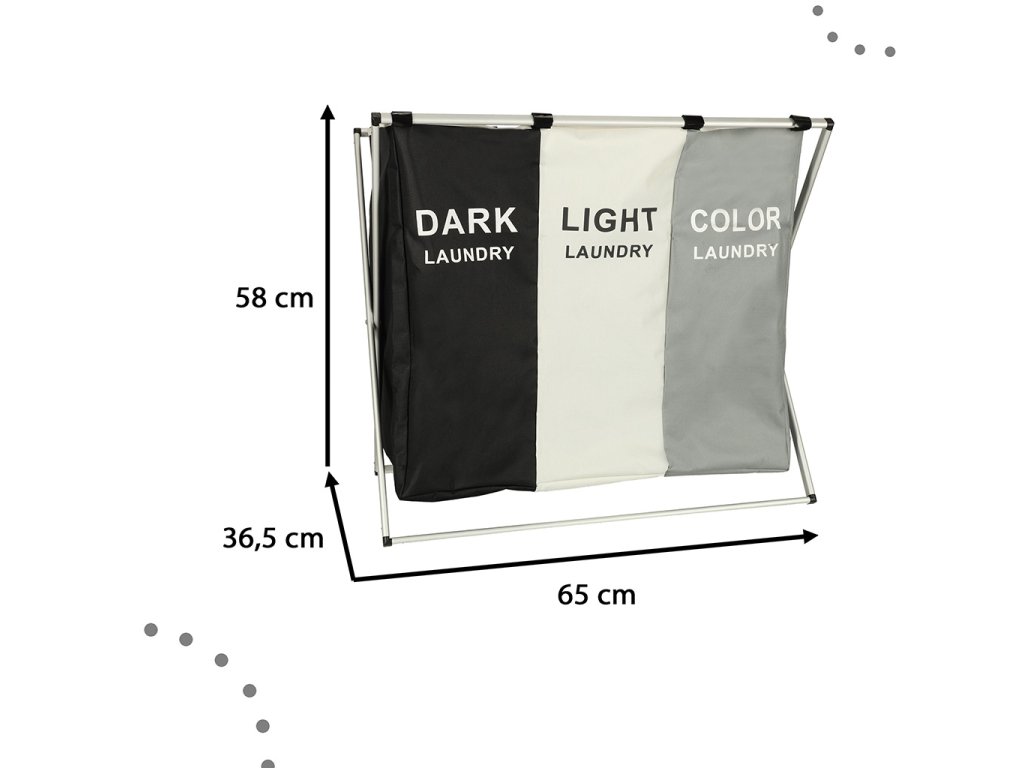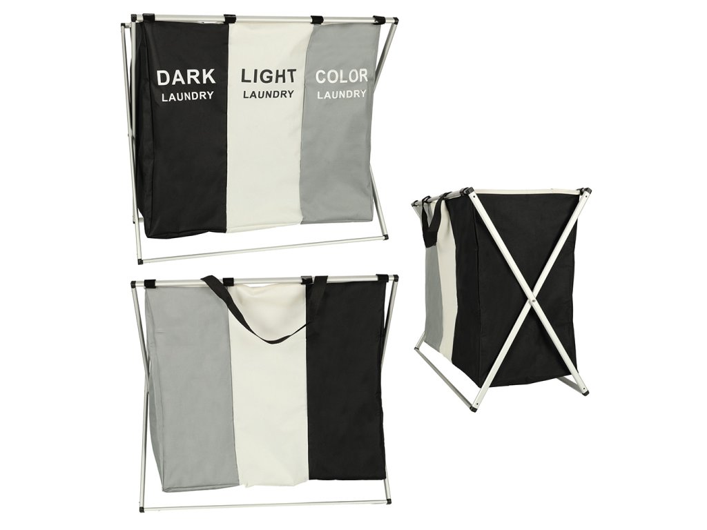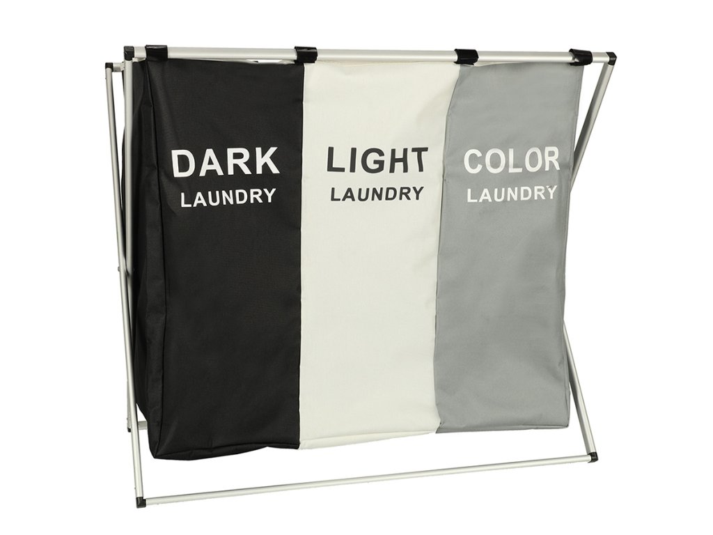 Tento koš je ideální pro ty, kteří hledají velký tříkomorový organizér na prádlo. Obsahuje tři samostatné koše v jednom! Každá přihrádka je signována a určena pro jiný typ prádla - černé, bílé a barevné - což usnadňuje třídění a udržování pořádku!