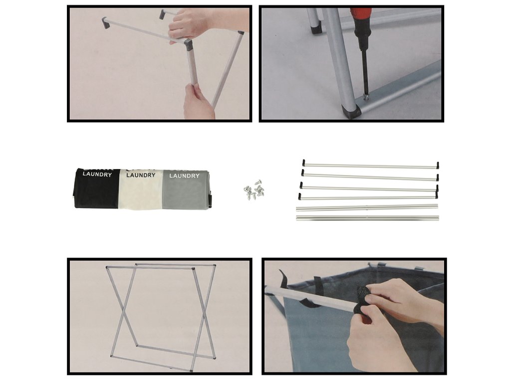 Organizér na třídění prádla do koše na prádlo se 3 přihrádkami 135l
