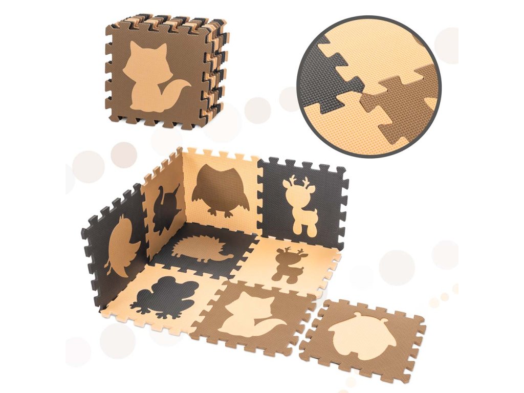 Pěnová podložka na puzzle pro děti 9 el. béžovo-hnědo-černá 85cm x 85cm x 1cm