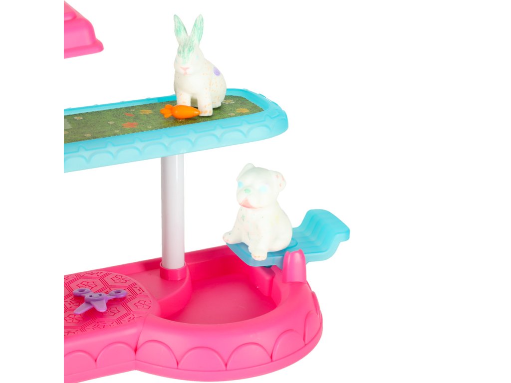 Na krabičce je vyřezávaná část (tráva). Sestavení lázní pro zvířata na hraní a vystřižení prvku z krabice by měla provádět dospělá osoba. Na hru by měla dohlížet dospělá osoba. Pozor na malé části, které zvyšují riziko udušení. Hračka s jídlem není vhodná ke konzumaci.