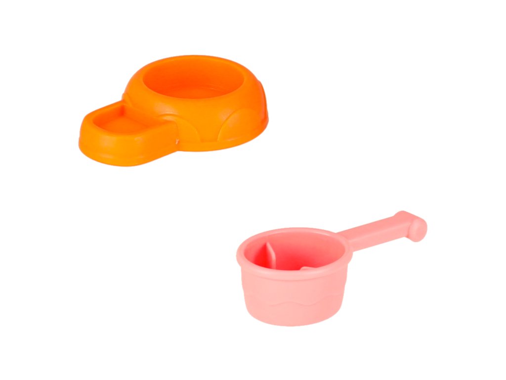 hračka s krmivem pro zvířata: 2 misky, šunka, kost, ryba a mrkev