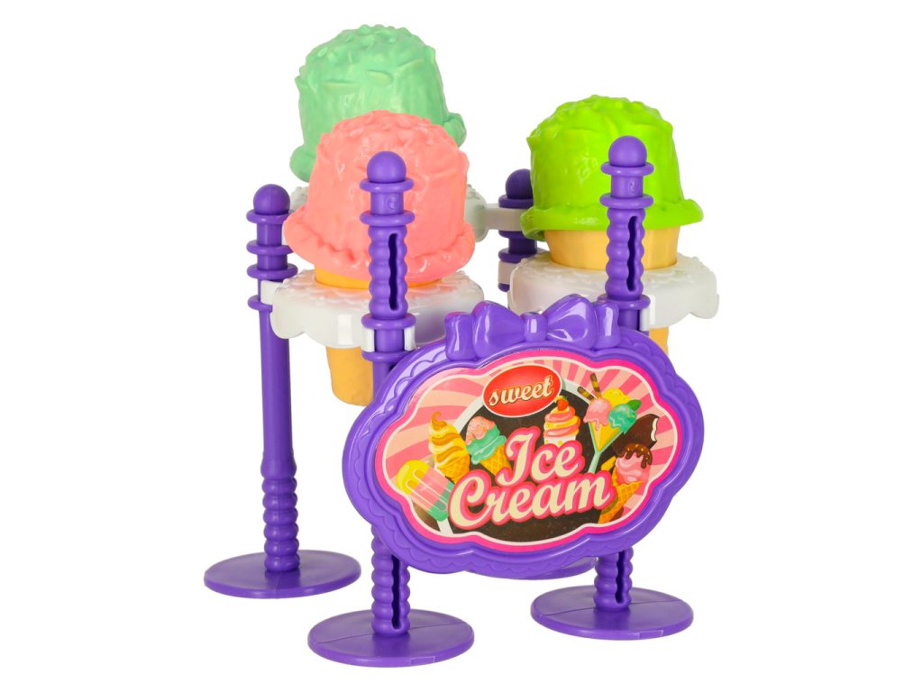 Sada obsahuje mnoho hracíchprvků: zmrzlinu,zákusky, ale i kelímek,tác, stojan na zmrzlinu, lžičku na zmrzlinu a další doplňky, které naplní každou hru fantazií a chutí. Pro doplnění je k dispozici barevnýubrus, na kterém lze minicukrárnu naaranžovat.