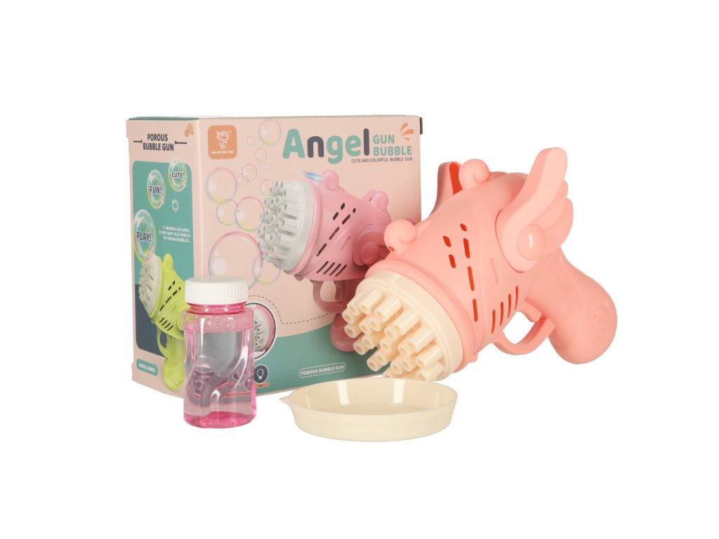 Pistole na mýdlové bubliny je výrobek, díky kterému je vypouštění bublin rychlé, působivé a rozhodně mnohem zábavnější. Stačí jedno tlačítko a z hlavně vyletí spousta malých bublinek!
