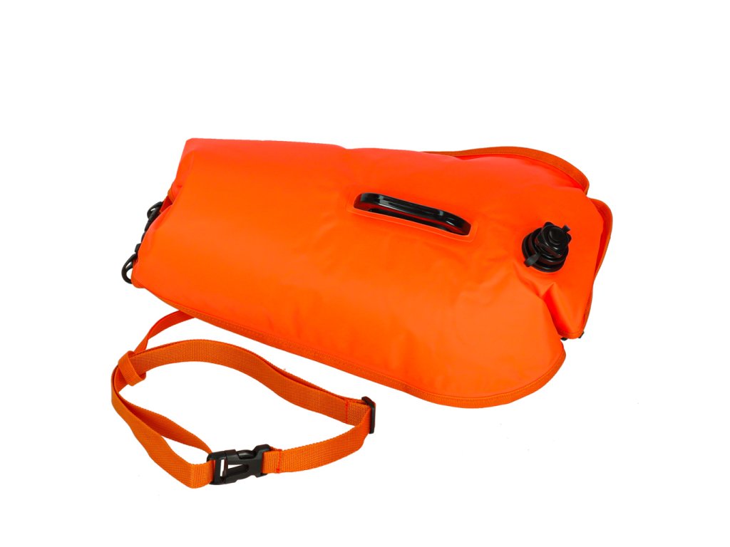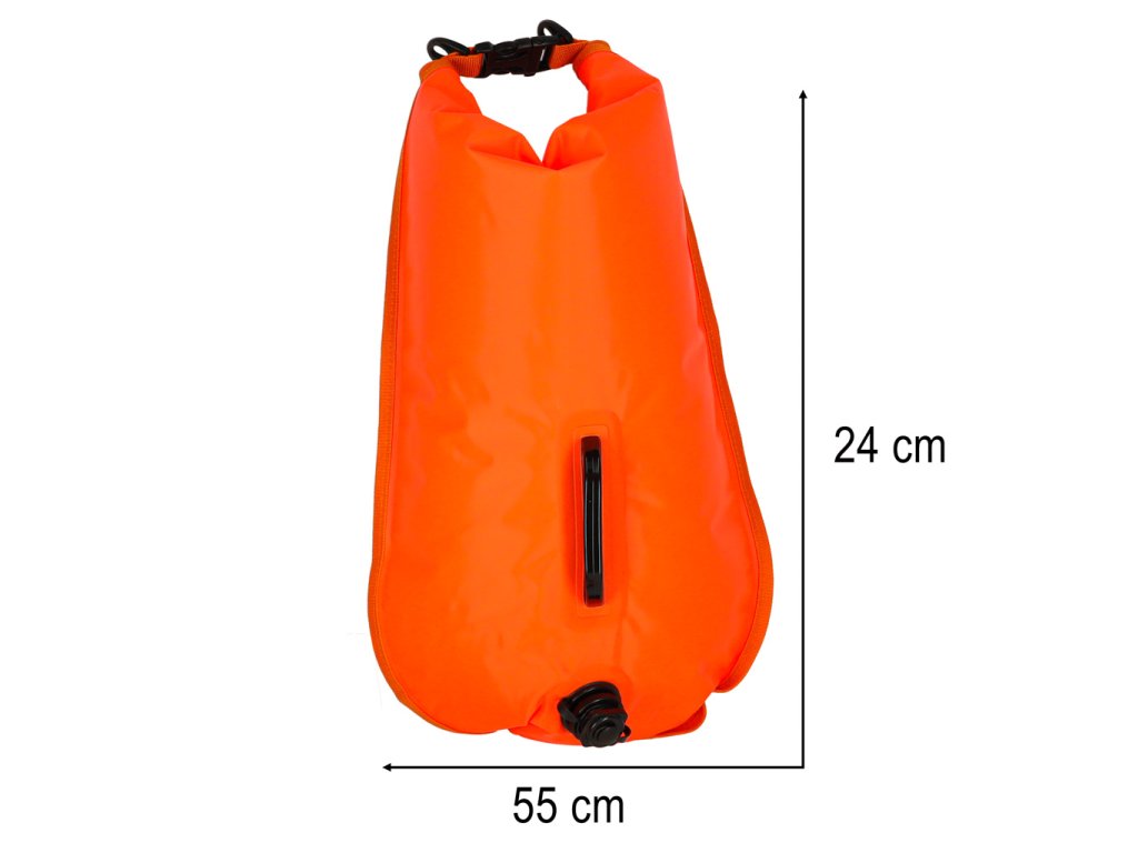 PLAVECKÁ BÓJKA 28L - NAFUKOVACÍ BÓJKA S KAPSOU NA SUCHÝ MATERIÁL, TAŽNÝM POPRUHEM A PÍŠŤALKOU - BEZPEČNÉ PLAVÁNÍ NA OTEVŘENÉ VODĚ