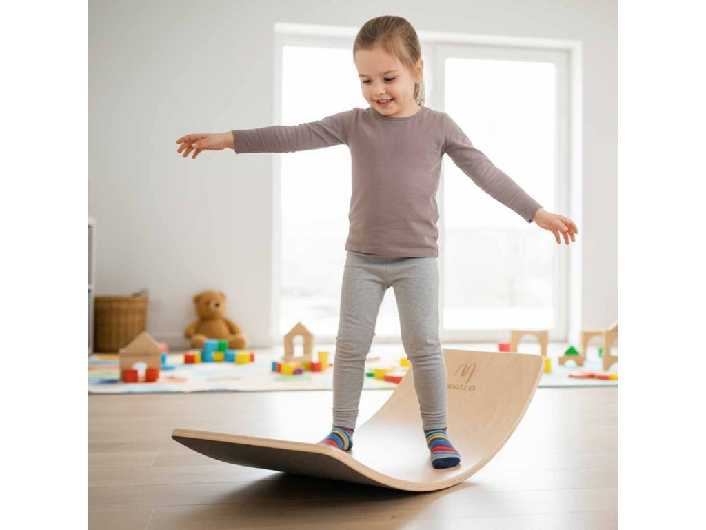 Podle zásad, které vypracovala Maria Montessori, platí, že čím jednodušší je hračka, tím lépe ovlivňuje vývoj dítěte! Není pochyb o tom, že balanční deska se k tomu dokonale hodí!