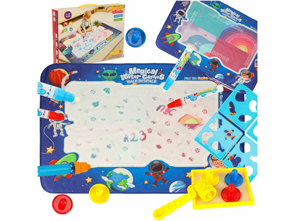 Představte si hračku, která rozvíjí kreativitu vašeho dítěte, učí a baví a zároveň nešpiní oblečení ani podlahu. Seznamte se s naší podložkou na malování vodou pro děti - inovativní sadou na malování vodou, která vaše děťátko vezme na neobyčejnou cestu vesmírem. Je to skutečné kouzlo bez nepořádku - stačí naplnit vodní fixy vodou a začít vytvářet barevné galaxie, planety a rakety na velké ploše podložky.