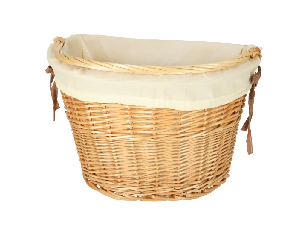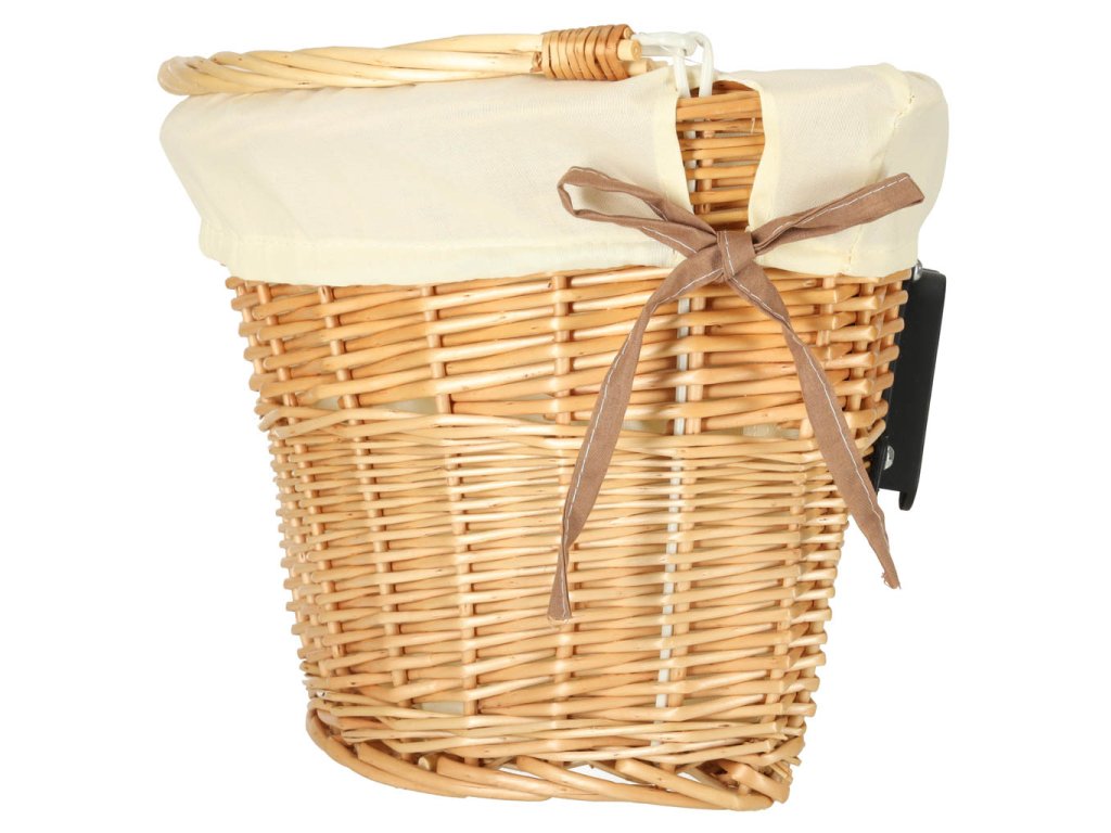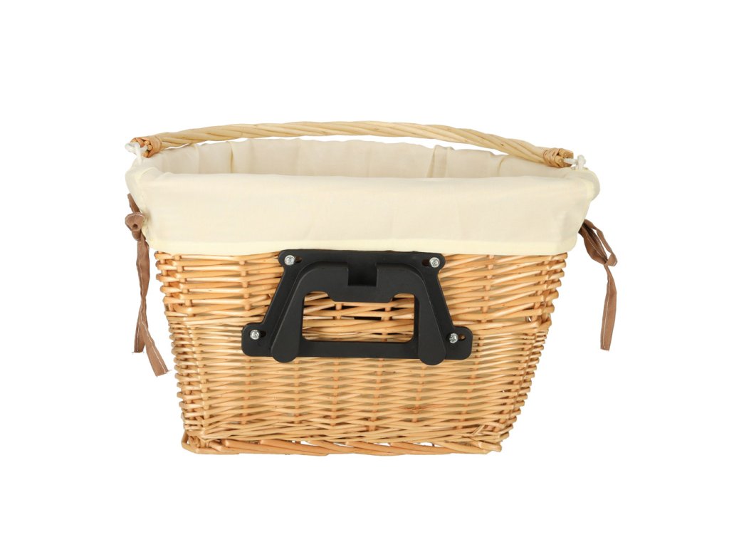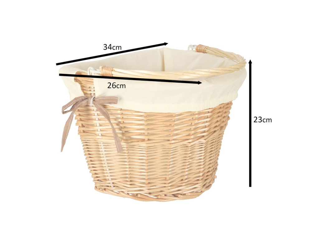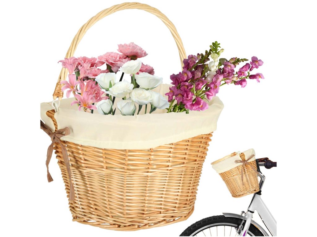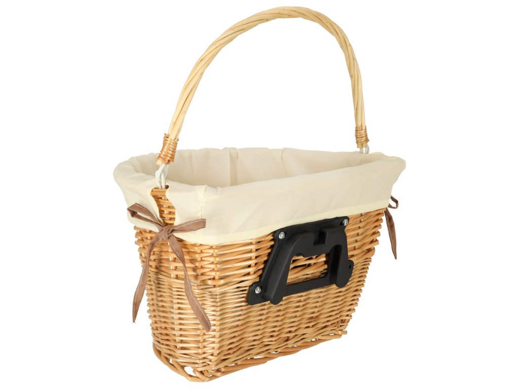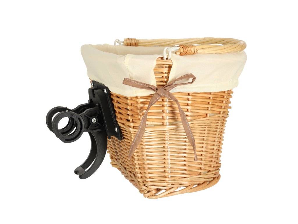 Proutěný košík na kolo s látkovou bílou vložkou. Má rukojeť pro snadné přenášení. Zapínání na zacvaknutí usnadňuje odepnutí a připevnění koše. Součástí balení jsou montážní díly. Materiál: proutí, polyester. Rozměry: 26 cm x 43 cm x 23 cm.