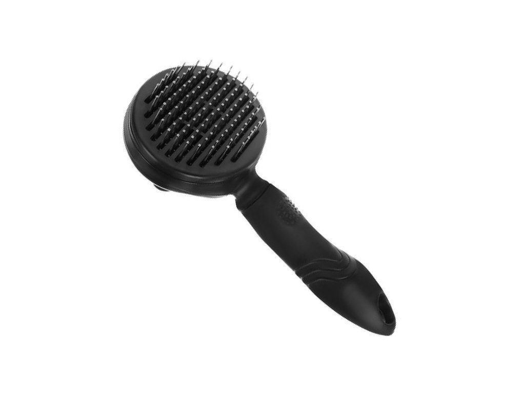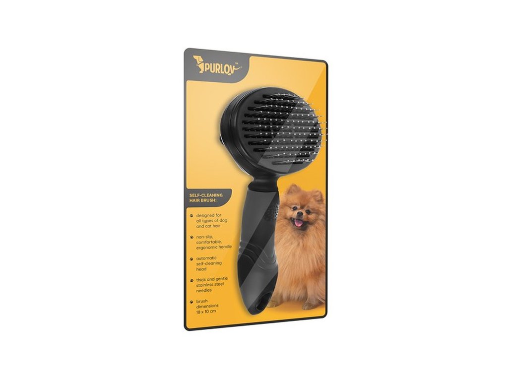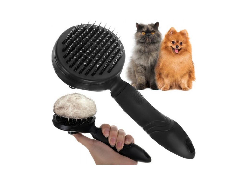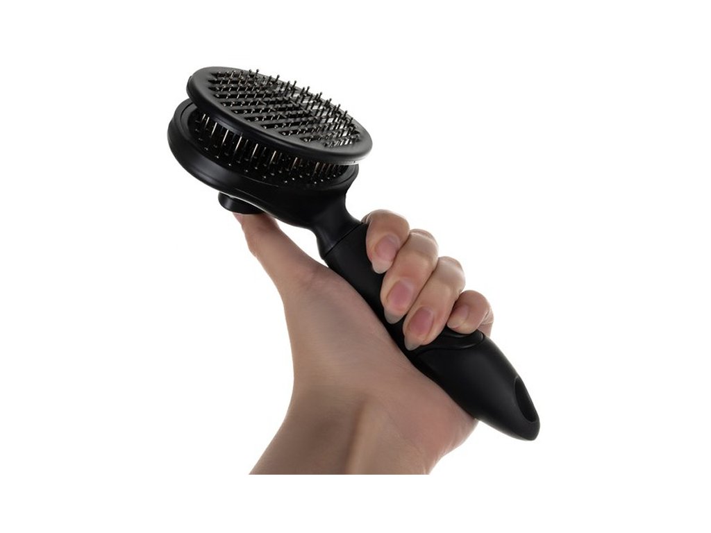 Samočistící kartáč díky pohodlnému tlačítku efektivně a rychle odstraňuje chloupky z jehel. Je to velmi pohodlné řešení při česání zvířete, protože při kartáčování nemusíte srst vytrhávat, stačí použít pohodlné tlačítko a srst sama naskočí.