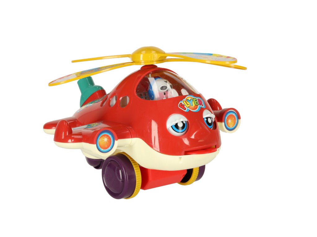 Červené letadélko při pohybu roztáčí vrtule, vyplazuje jazyk a vydává zvuk zvonku. Tato kombinace je ideální pro stimulaci zraku a sluchu!