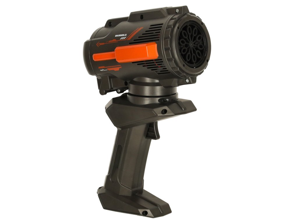 Stroj ze zadní části auta lze také připevnit na přiložený stojan, čímž se promění ve snadno použitelnou pistoli na mýdlové bubliny.