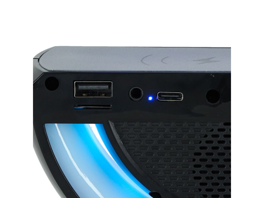 Funkce: BT, FM, SD karta, AUX, bezdrátové nabíjení, RGB
