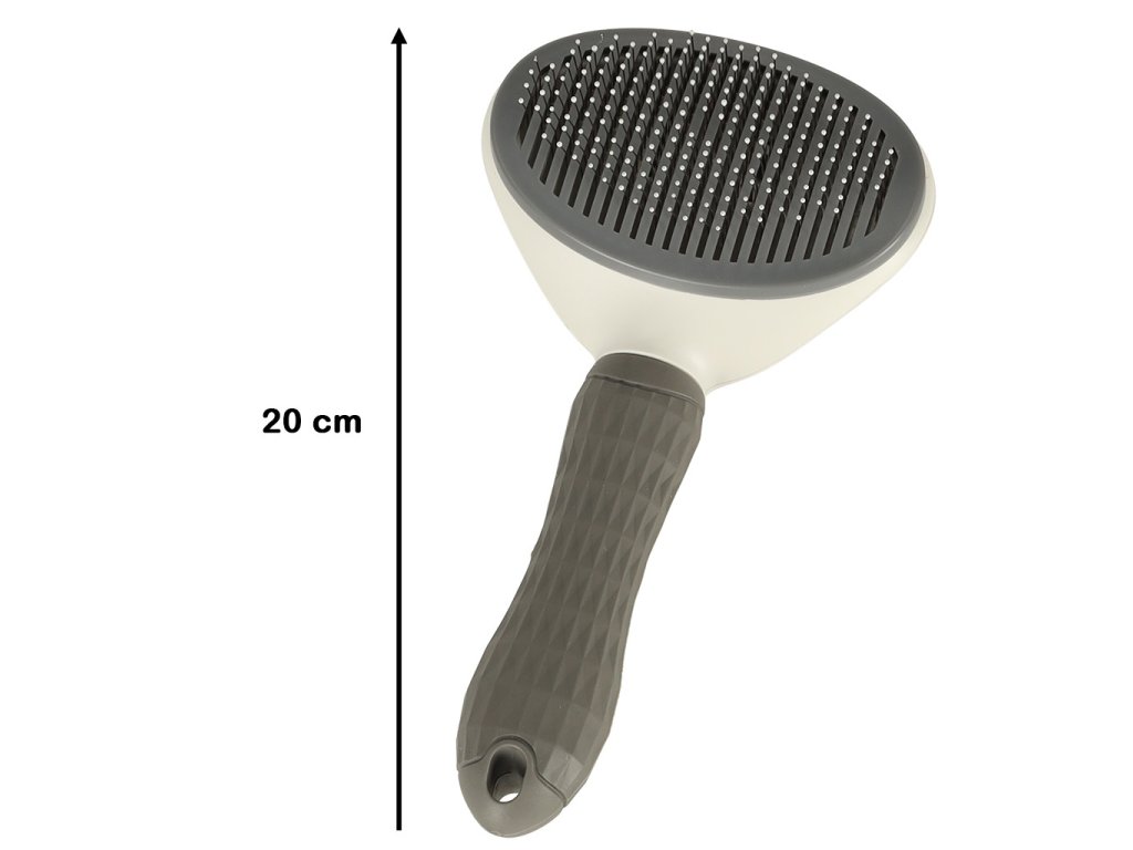 Kartáč má navíc samočisticí mechanismus. To znamená, že při vyčesávání zvířete nemusíte vyhrabávat chlupy mezi zuby kartáče. Stačí stisknout tlačítko a všechny vyčesané chlupy se z kartáče snadno dostanou pryč.
