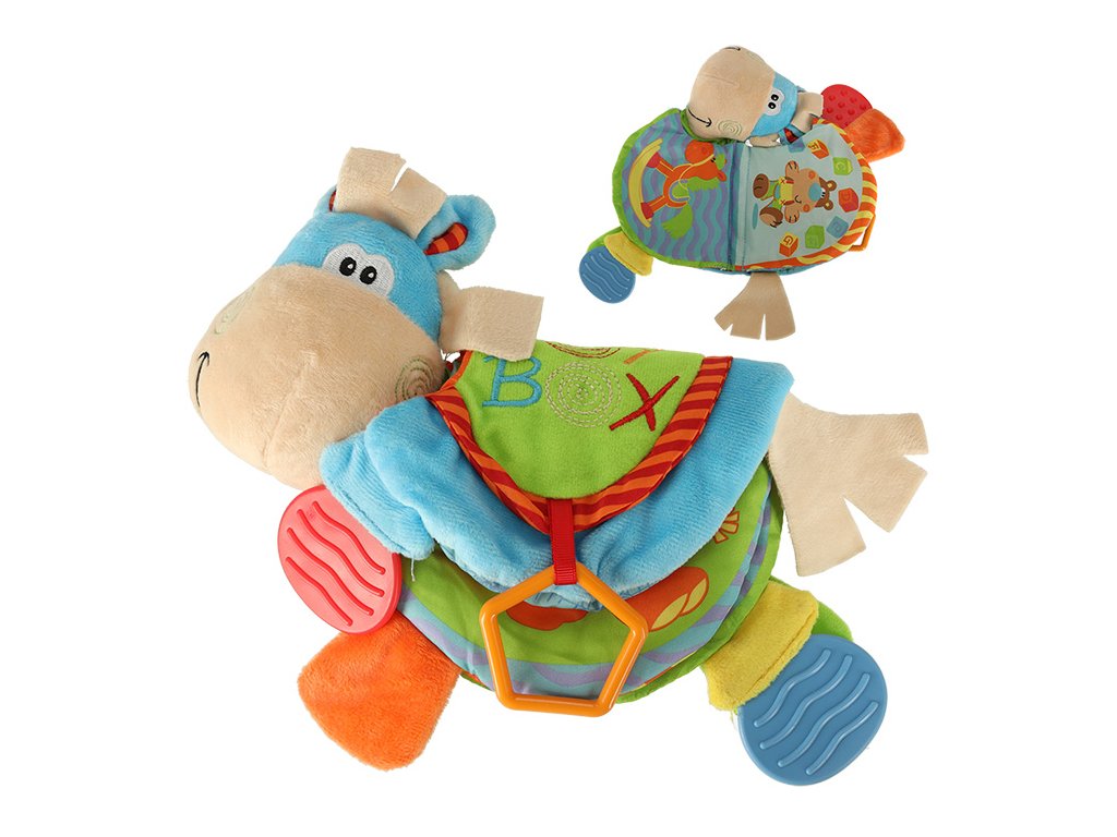 Součástí skládací manipulační knížečky je roztomilý oslík, který se jistě stane oblíbeným plyšákem vašeho děťátka. Zvířátko je měkké a jeho barvy jsou výrazné - zaujme pozornost každého batolete.