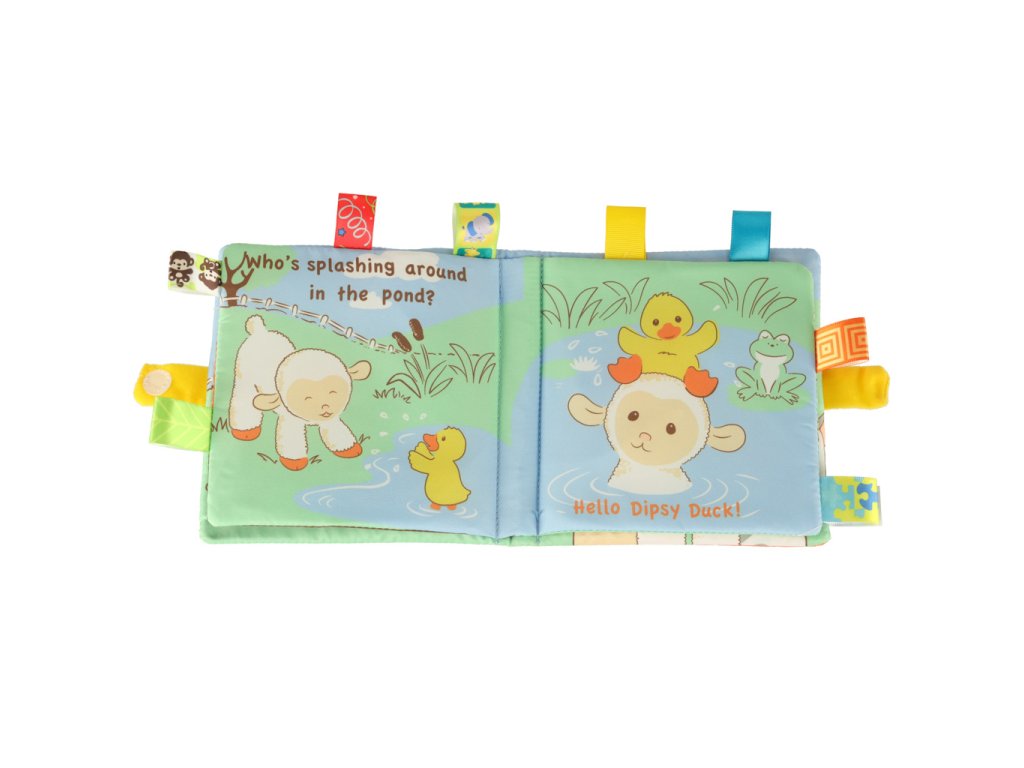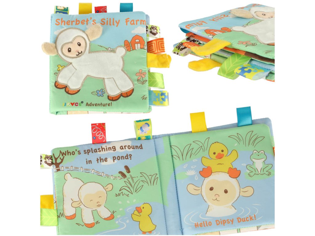 Látková knížka o malé ovečce, která hledá své kamarády - první "čtení" vašeho děťátka.