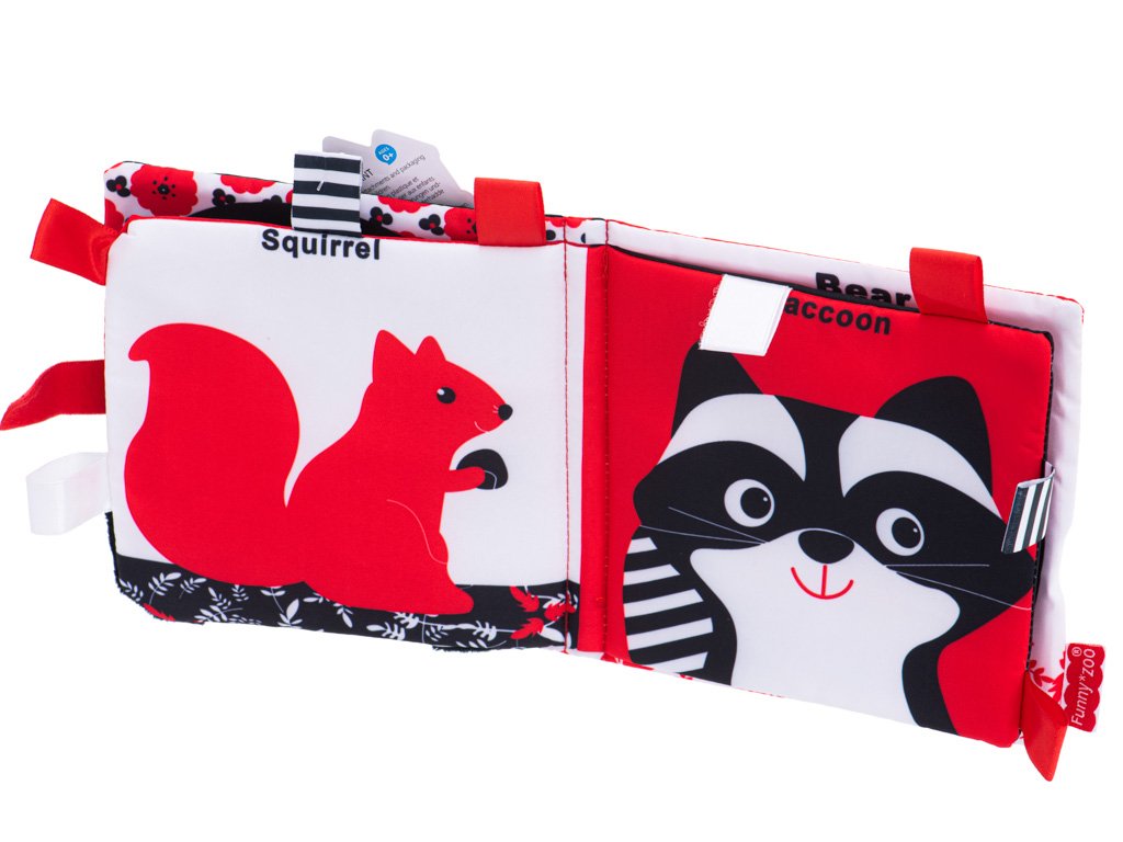 Kouzelná látková knížka s kontrastními vzory je skvělá pro děti, které právě začínají poznávat svět. Bílé, černé a červené obrázky budou skvělým úvodem do poznávání zvířat.