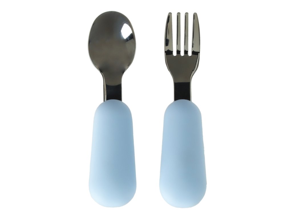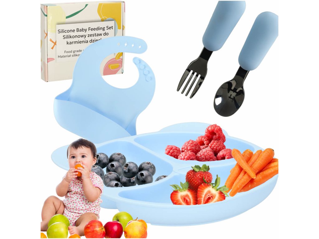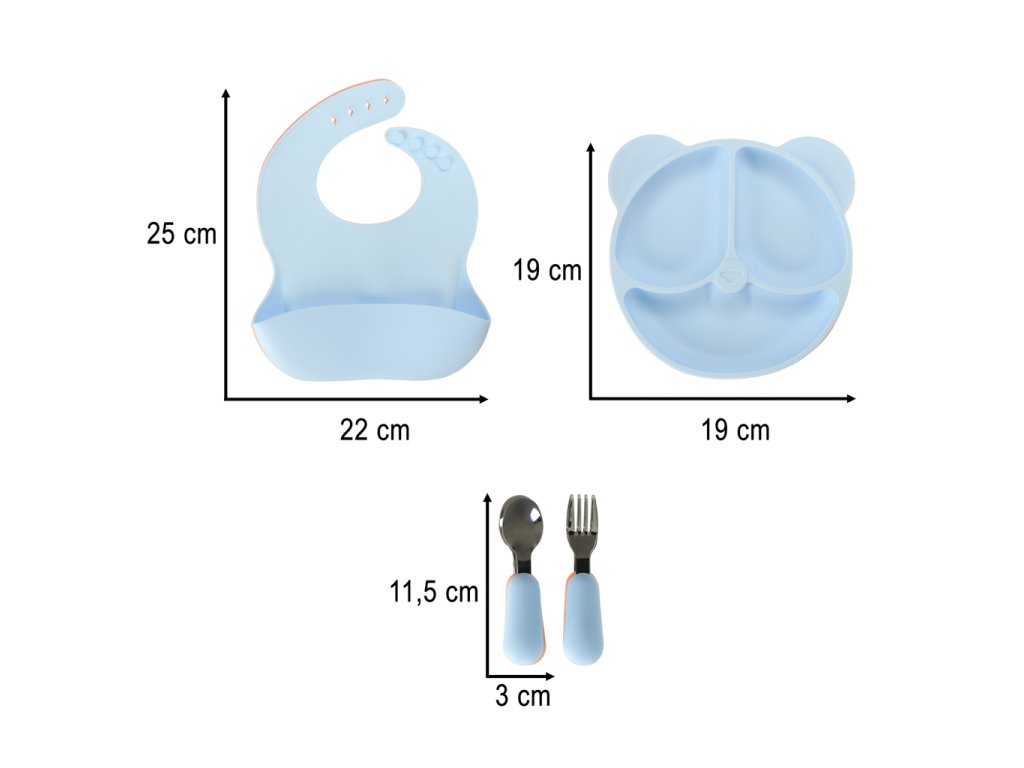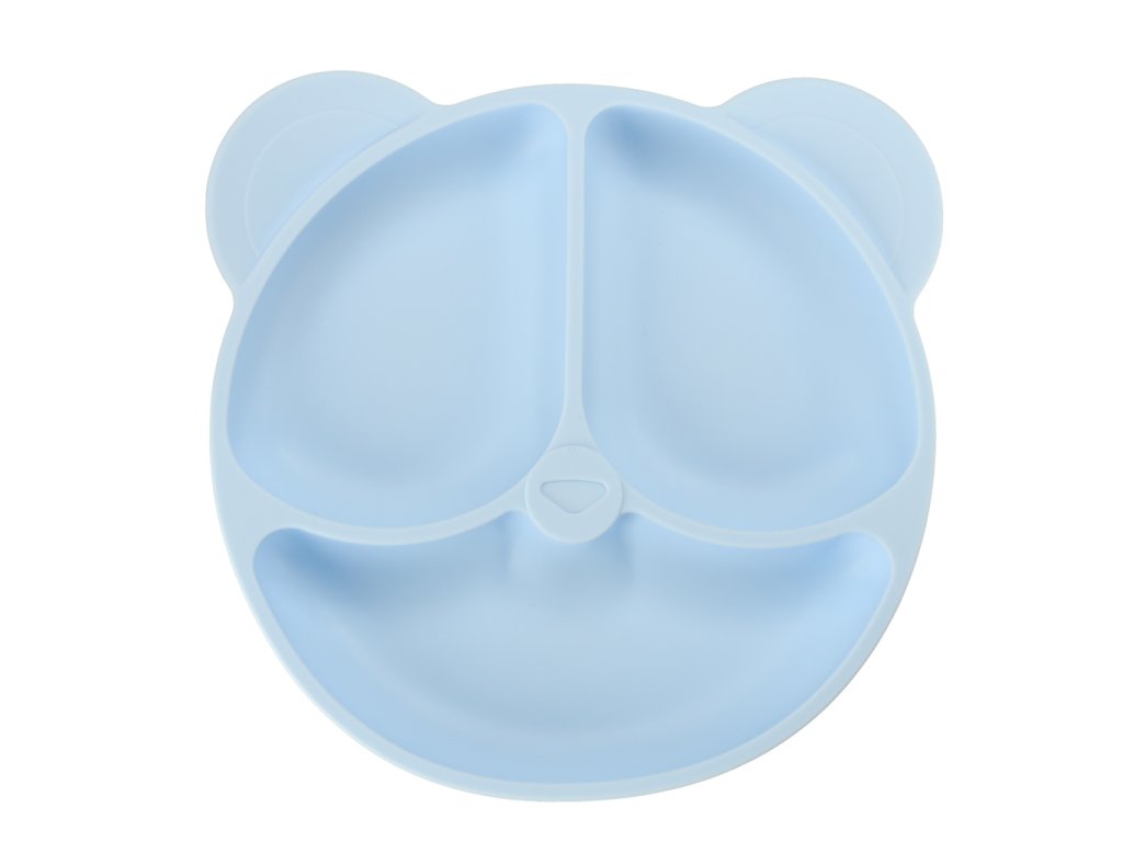 Silikonové dětské nádobí medvídek světle modrý 4el