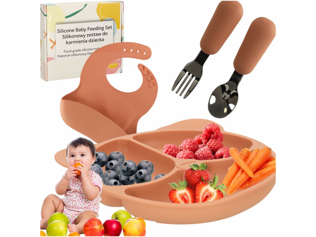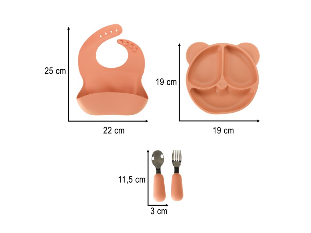 Silikonové nádobí pro dětský stůl sada 4 kusů medvídek oranžový