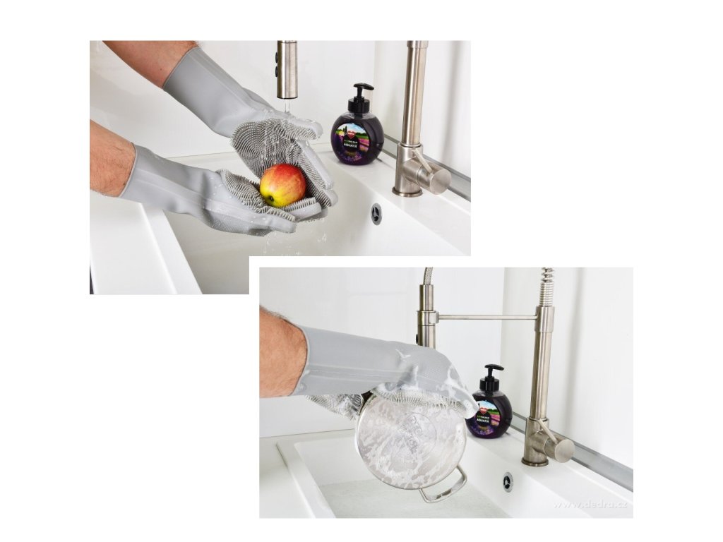 Rukavice jsou opatřeny štětinkami na dlaních pro ještě lepší výsledek čištění než s běžnou utěrkou nebo houbičkou. Využití v každé domácnosti od čištění koupelny, mytí nádobí, očištění kůry z ovoce až po česání domácích mazlíčků.