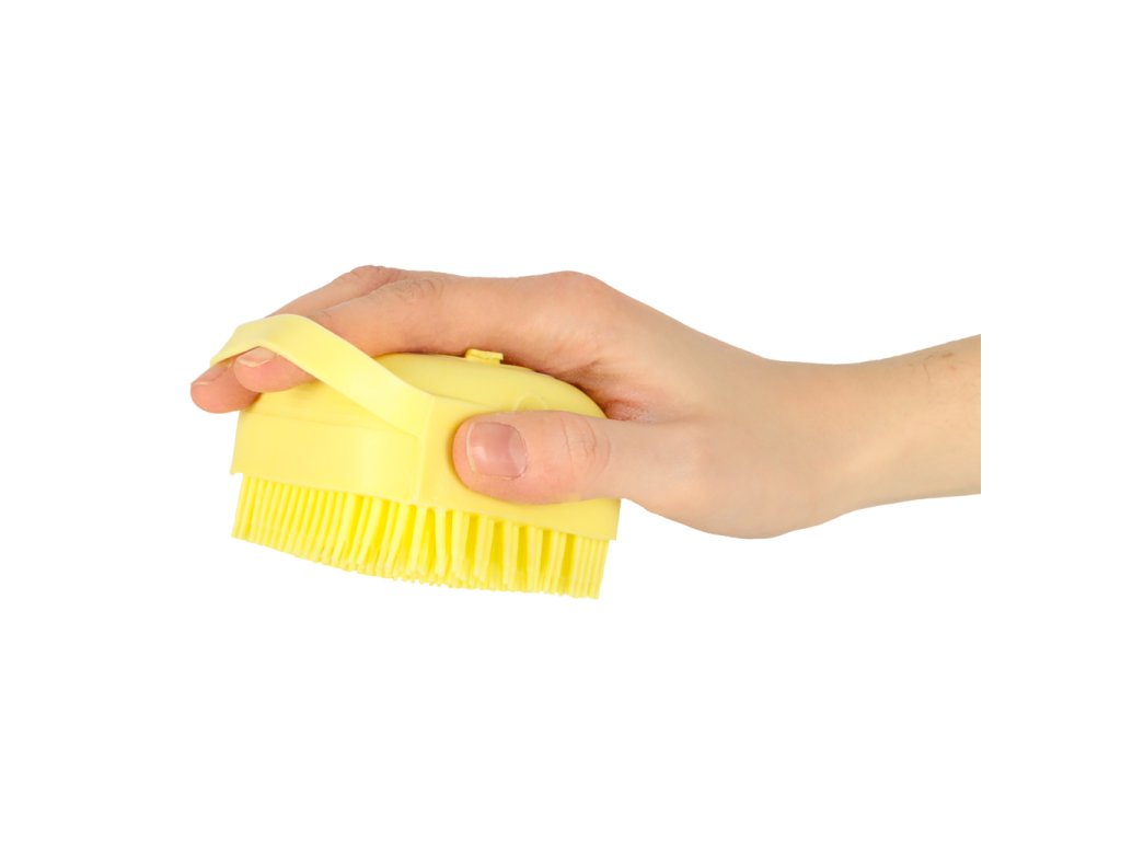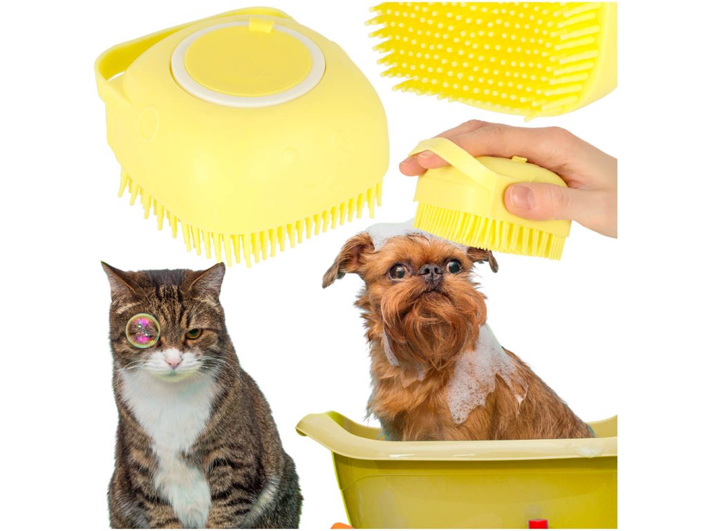 Silikonový kartáč na mytí psů koček žlutý