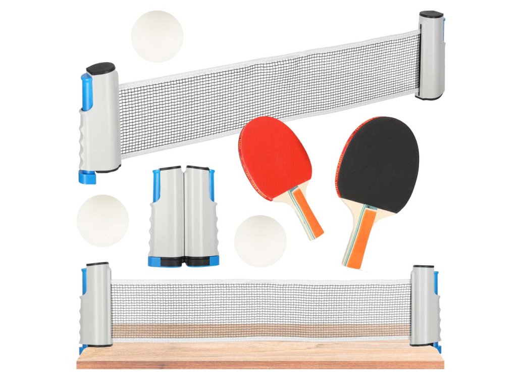 Sadu na stolní tenis lze snadno sestavit. Síťku namontujeme prakticky na jakýkoli stůl a díky raketám a míčkům můžete ihned začít hrát vzrušující hry.