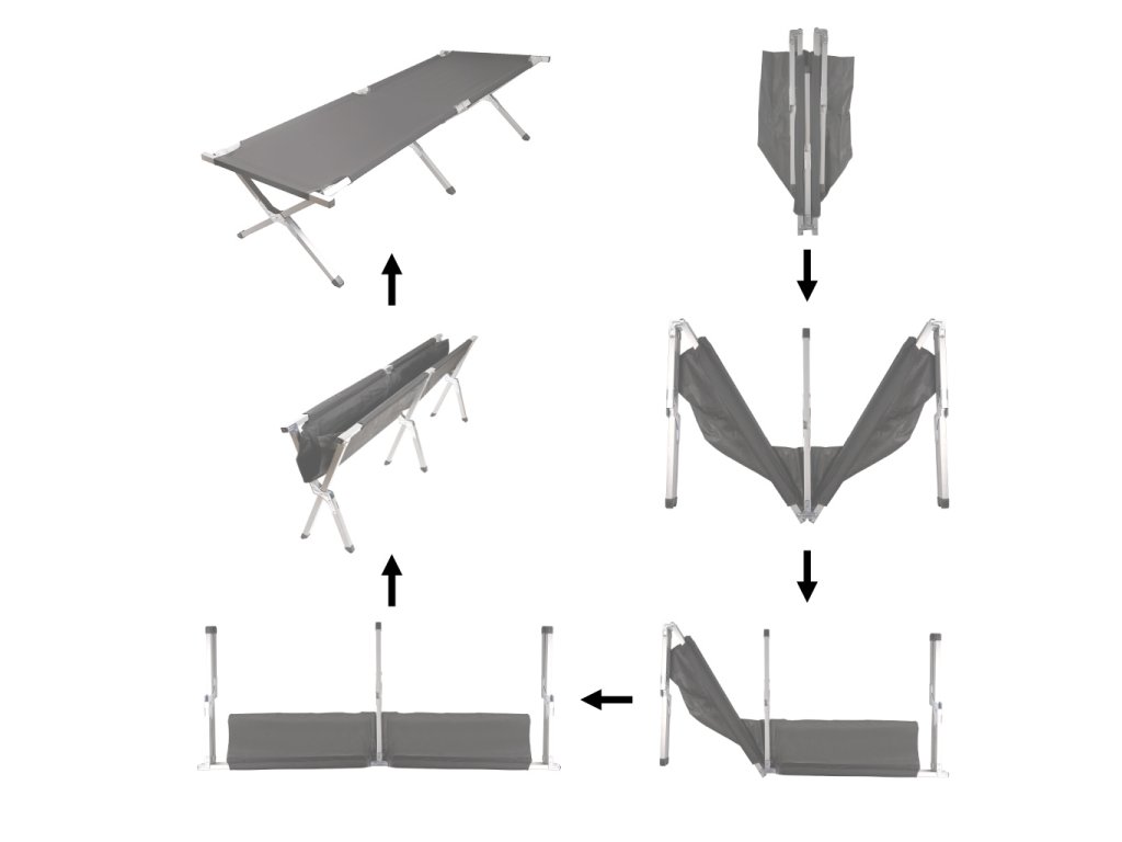 Zesílený ocelový rám a tříbodová křížová podpěra zajišťují stabilitu rozloženého lůžka a zaručují, že je opravdu pohodlné!
