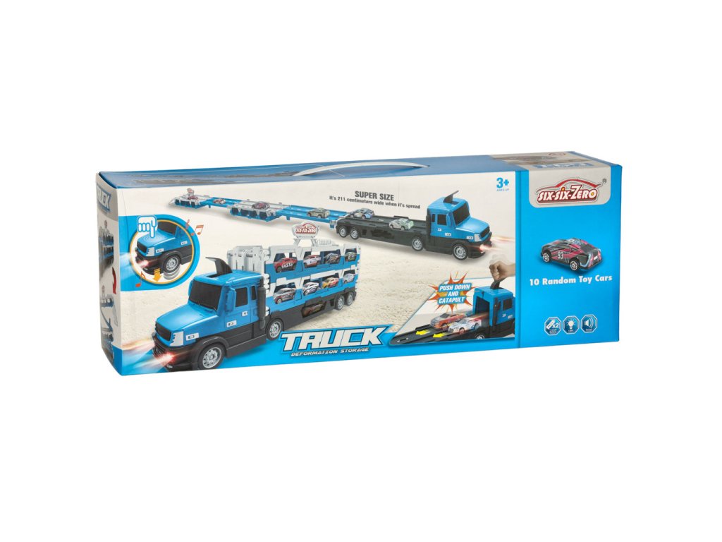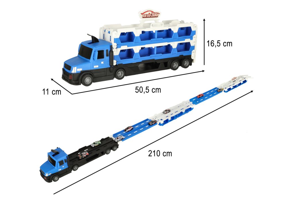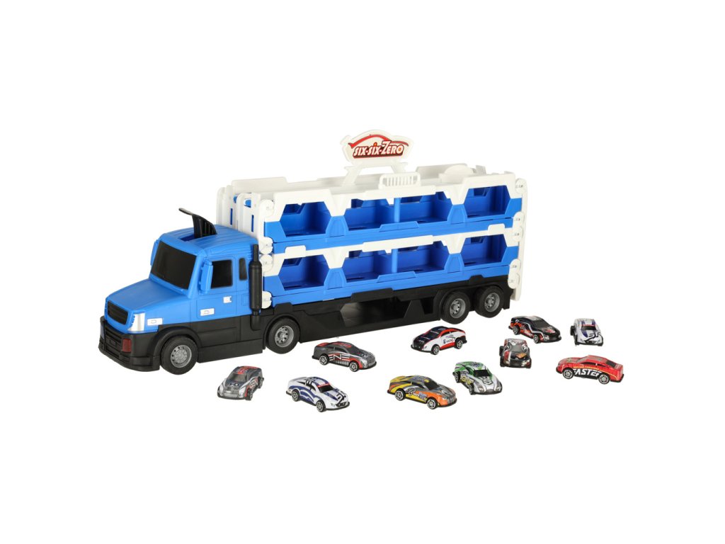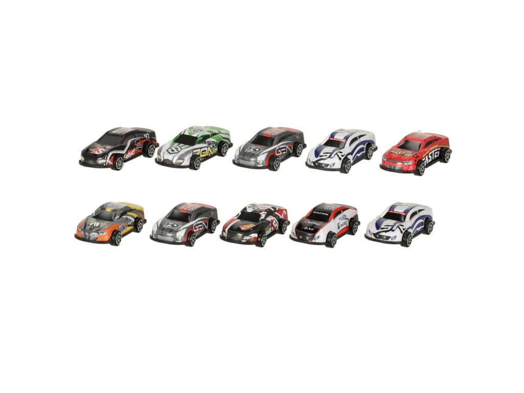 unikátní sada - Balení obsahuje vše, co potřebujete pro fantastickou zábavu: přívěs, závodní dráhu a 10 autíček.
