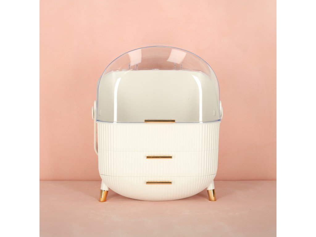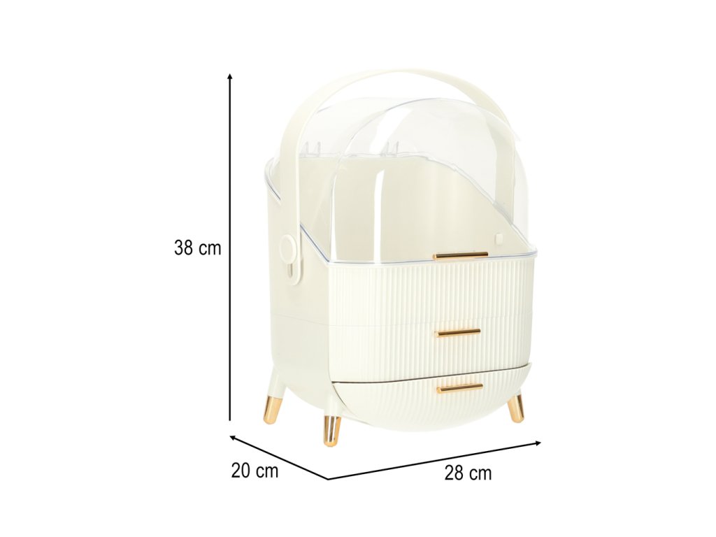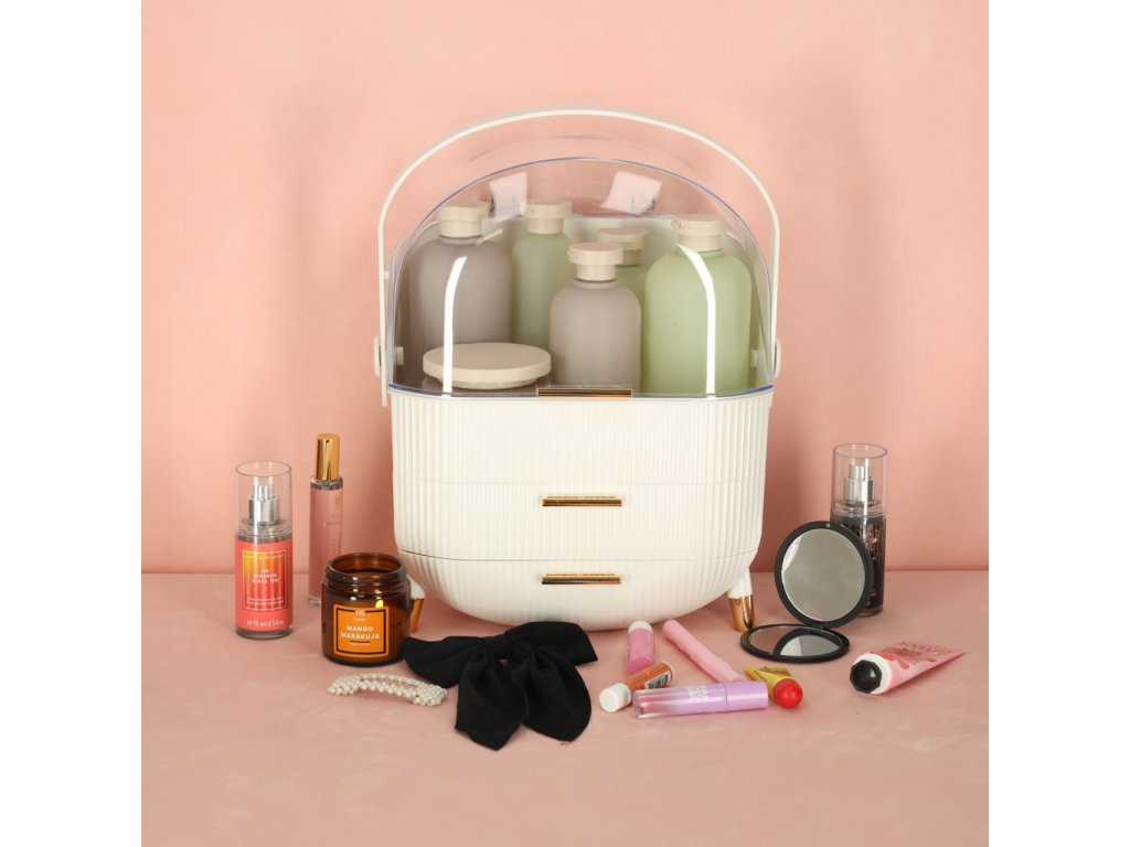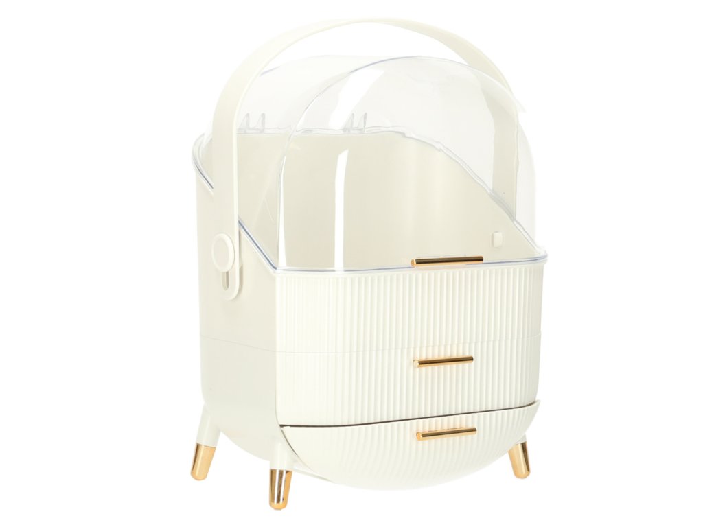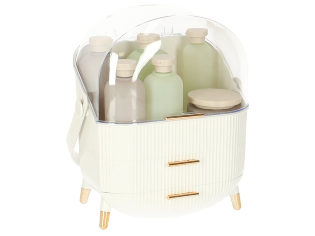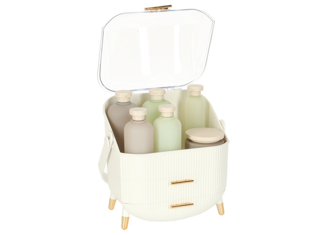 Tento organizér kontejner je určen pro lidi, kteří chtějí mít všechny své kosmetické doplňky po ruce a v dokonalém pořádku. Díky průhlednému víku a dvojitým zásuvkám do něj snadno uložíte koupelnovou kosmetiku i šperky, štětce, krémy nebo drobnosti na líčení.