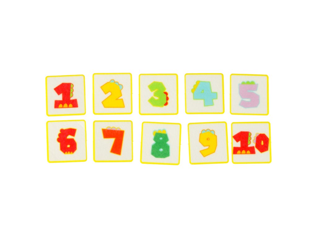 Prvky připevnitelné na suchý zip (čísla, učení počítání)