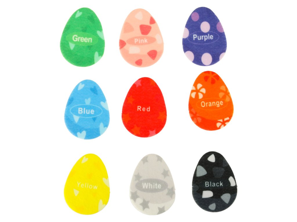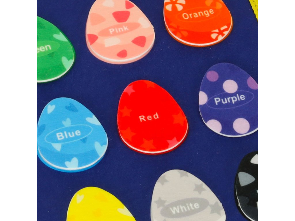 Prvky připevnitelné suchým zipem: vajíčka různých barev