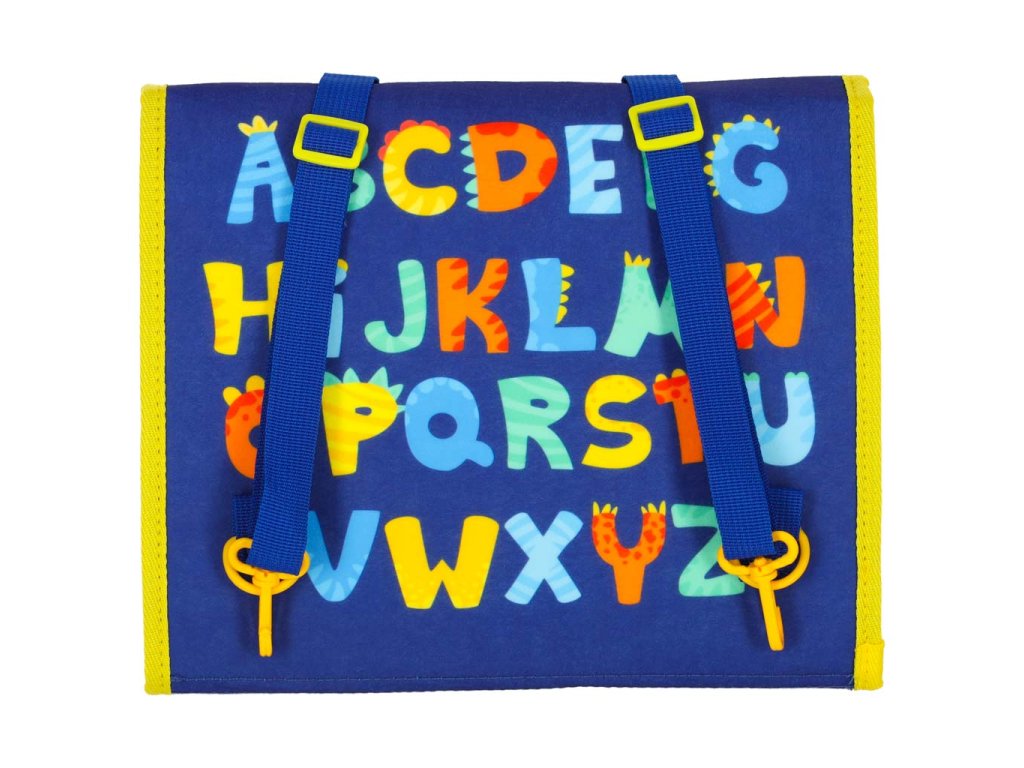 V blízkosti zadních popruhů je barevná abeceda - ideální pro učení písmen a rozpoznávání znaků