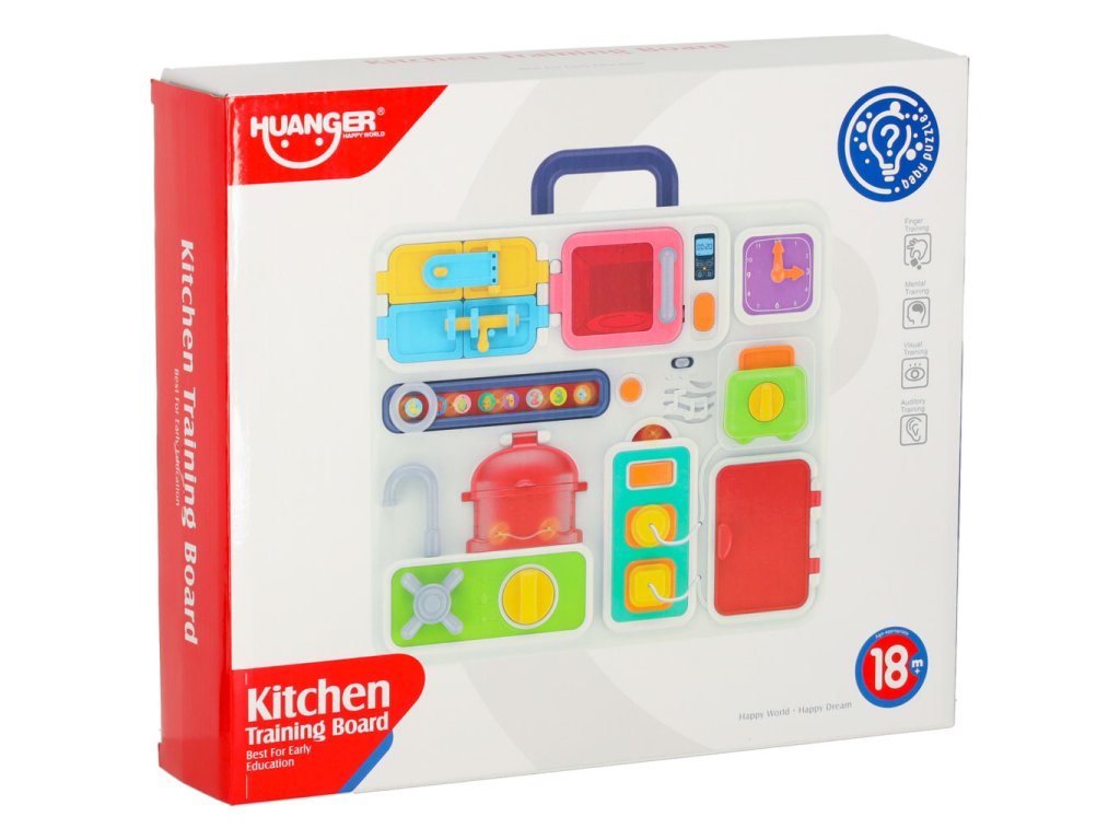 Smyslová manipulační deska montessori kuchyňské hodiny světlo zvuk