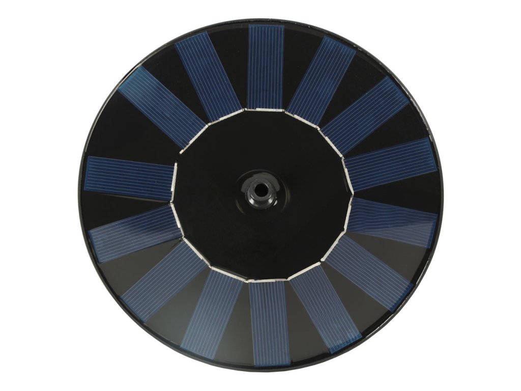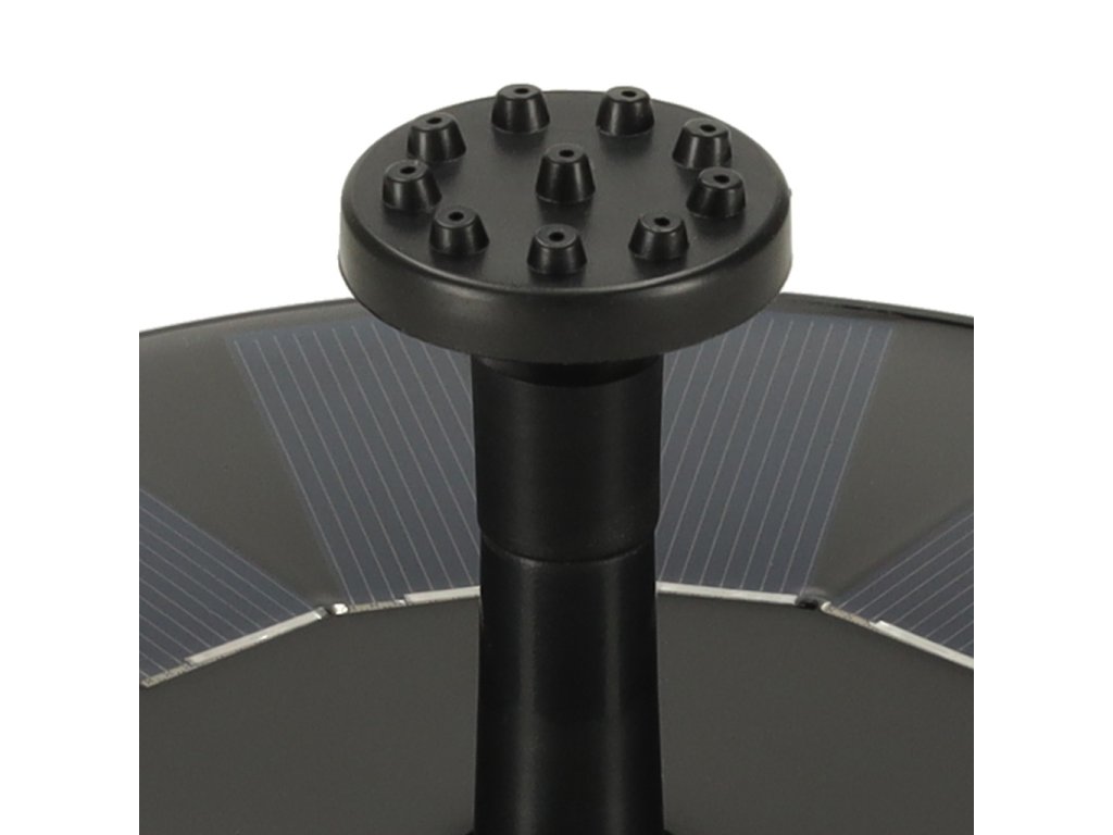 Fontána je vybavena solárním panelem o napětí 7 V a výkonu 1,4 W, což znamená, že zařízení nemusí být připojeno k elektrické síti. Vestavěná baterie se sama nabíjí pomocí solární energie. Chcete-li zajistit spolehlivý provoz fontány, umístěte ji na dobře osvětlené místo.