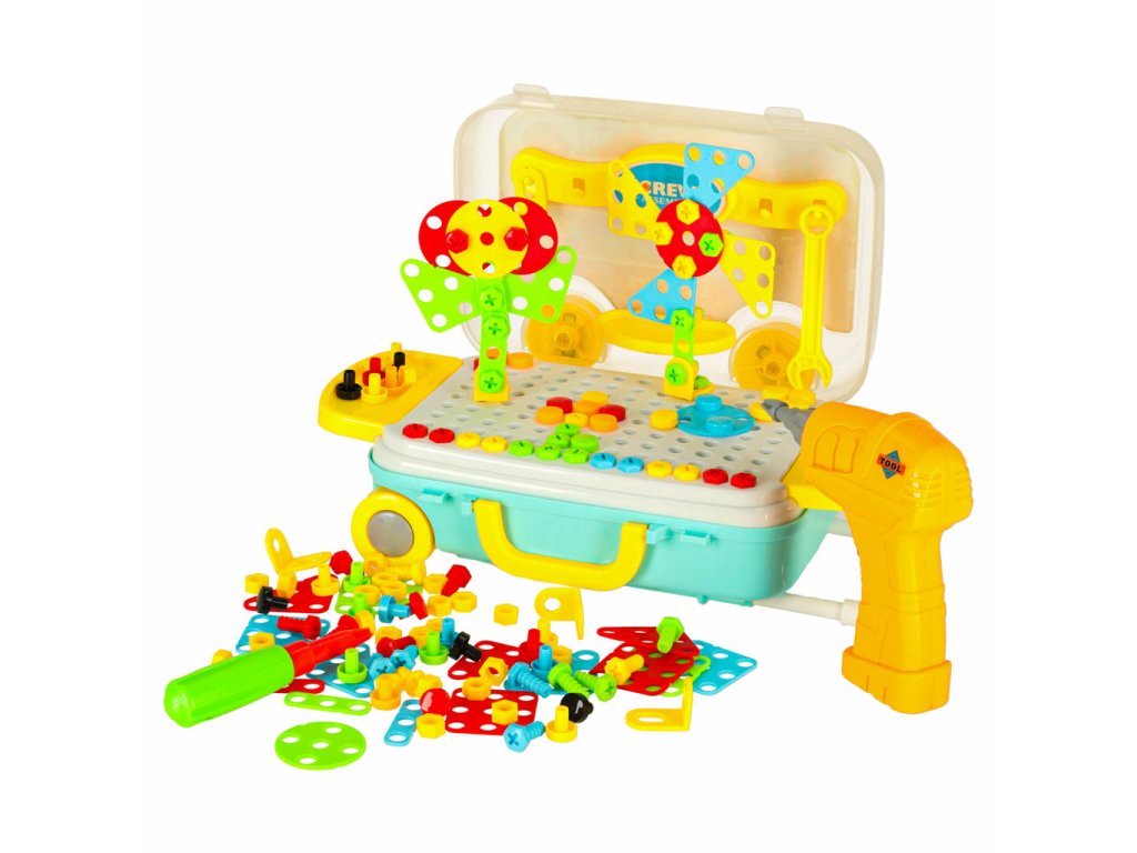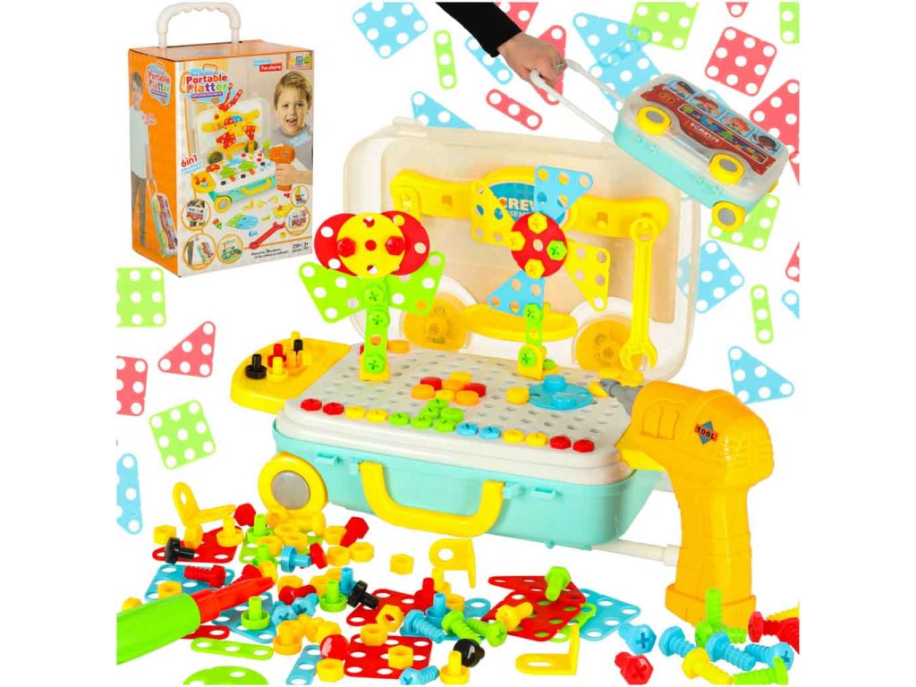 VZDĚLÁVACÍ PUZZLE SE ŠROUBOVÁKEM V KUFŘÍKU S 258 DÍLKY.