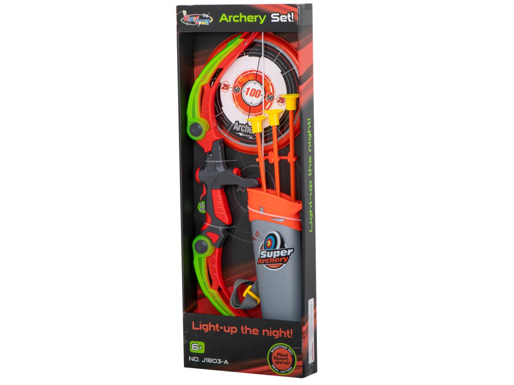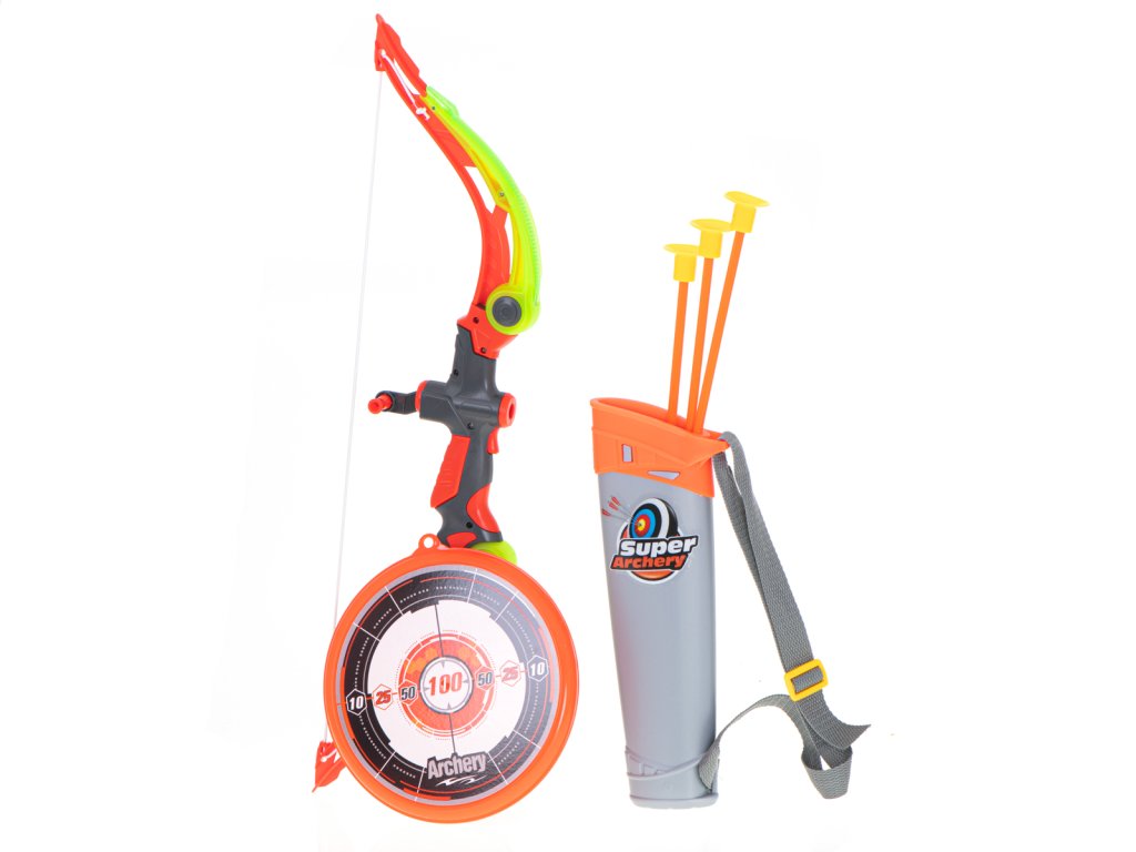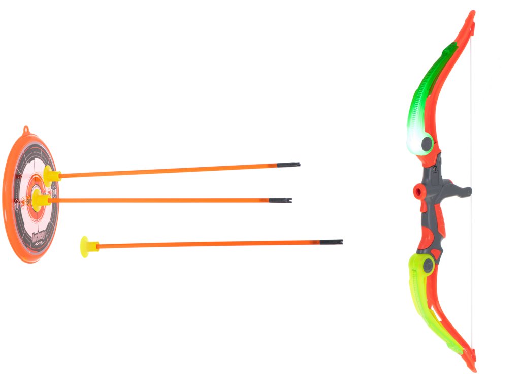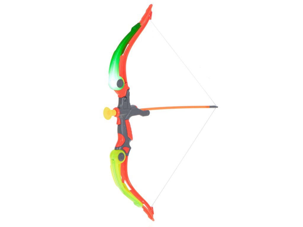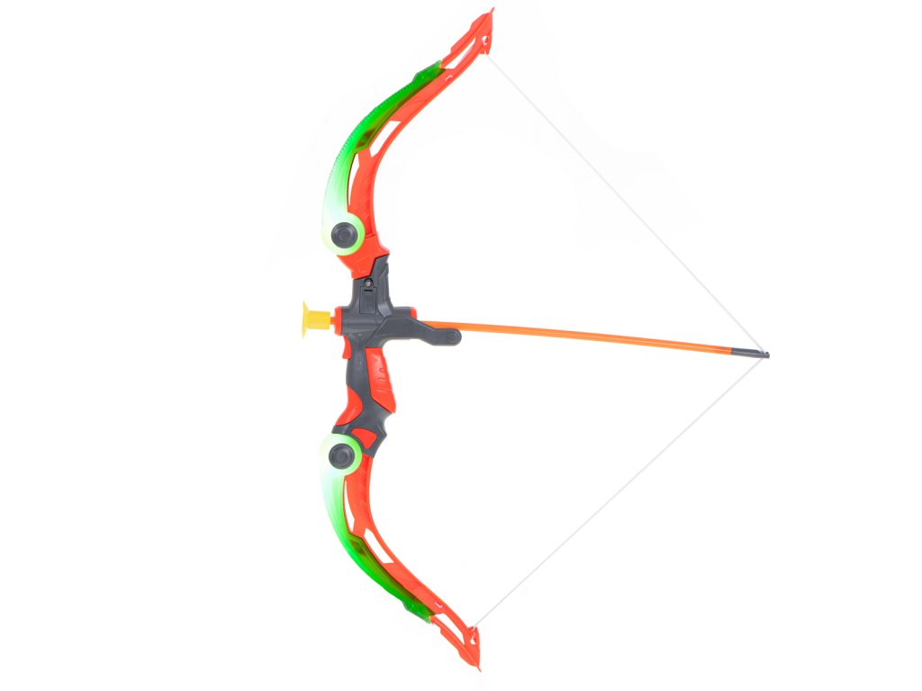 Hračka luk je ideální zábava pro děti, které sní o tom, že se stanou lukostřelci. Luk je napnut gumou a každý šíp je zakončen gumovým hrotem.