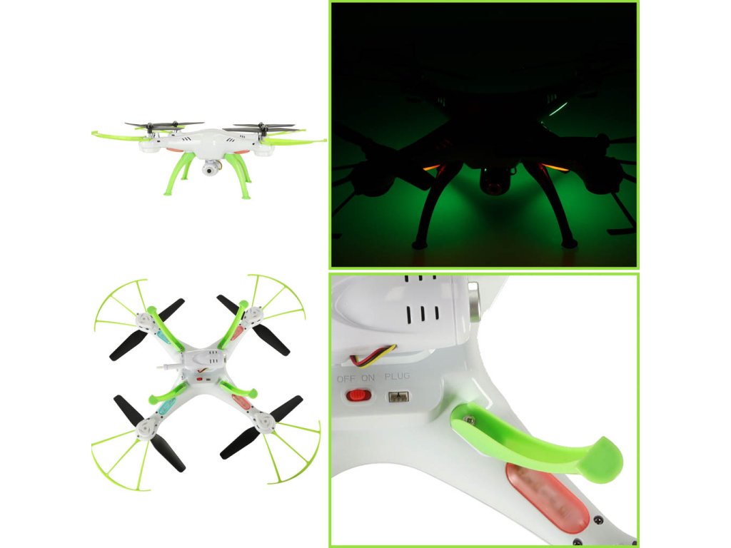 LED osvětlení použité v modelu Syma X5HW nám umožňuje posoudit polohu dronu ve vzduchu. Díky těmto různým barvám můžeme rozlišit, kde se nachází přední a zadní část naší hračky. LED diody umožňují efektní lety v noci.
