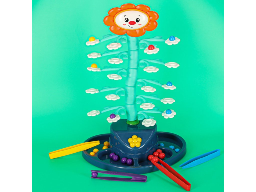 Hra začíná! Slunečnice se začne točit a otáčet - vaším úkolem je umístit barevné kuličky do řady.