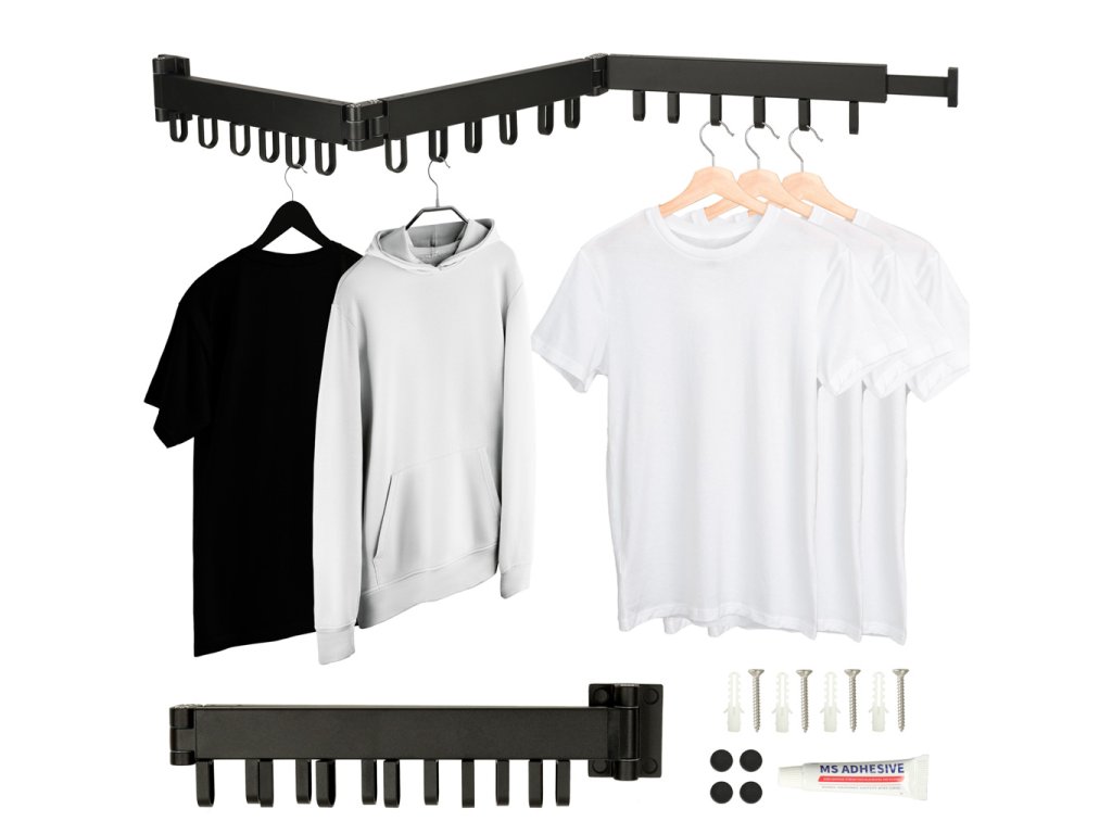Teleskopický výsuvný nástěnný věšák 114 cm černý