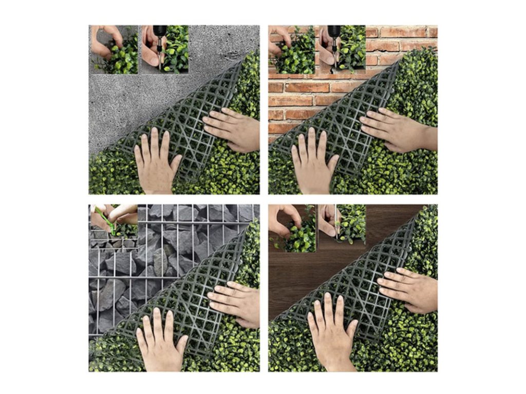 - realistický vzhled - listy buxusu vypadají velmi podobně jako přírodní břečťan, vytvoříte krásnou zelenou stěnu, která vnese přírodní atmosféru do každého místa