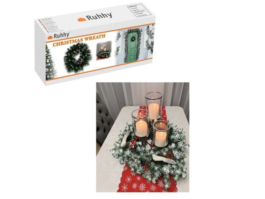 - STYLOVÝ + DEKORACE – umělý vánoční věnec bude perfektním doplňkem do každé místnosti. S touto pomocí můžete vytvořit jedinečné kompozice nejen do obývacího pokoje, skvěle poslouží i v předsíň nebo na vstupní dveře. Navíc je zdobený umělým sněhem, šišky a větvičky s červenými koulemi.