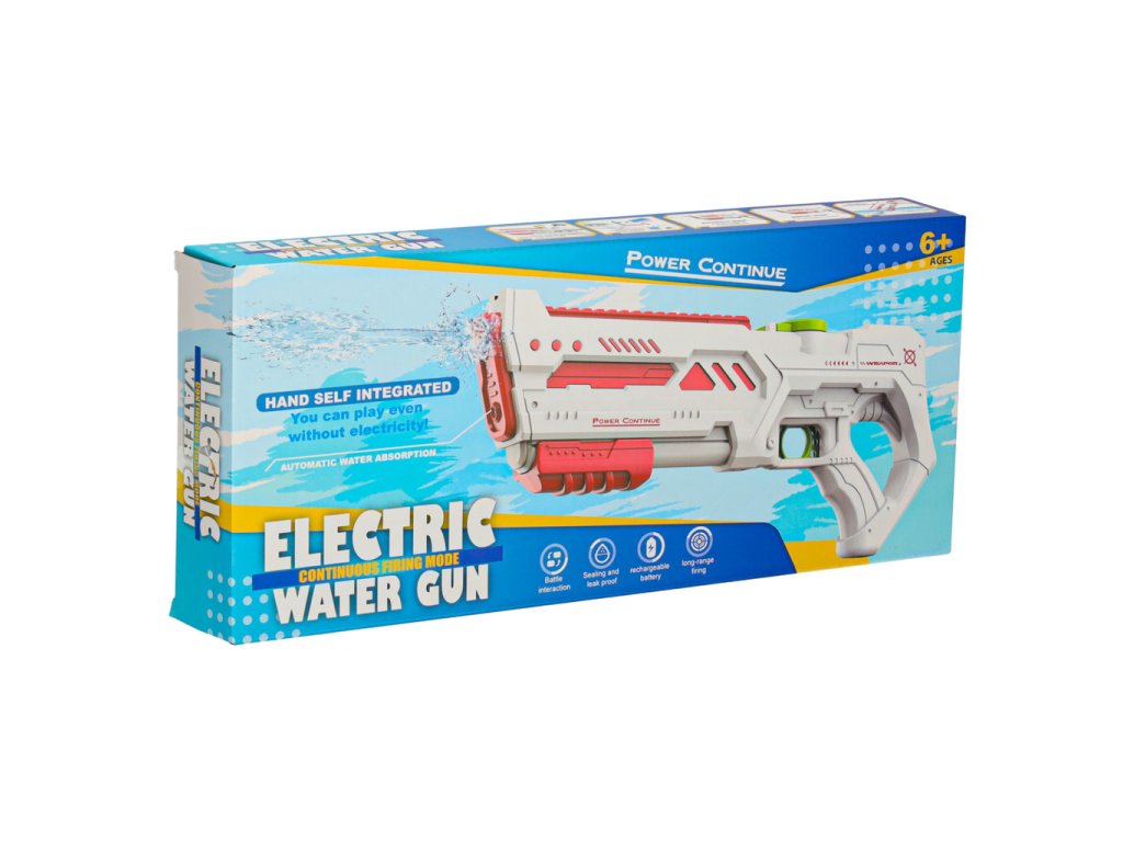 Naše elektrická vodní pistole je mimořádně praktická a její ergonomický, moderní design se bude těm nejmenším líbit. Působivý dosah střelby vodním paprskem 10 metrů zajišťuje vzrušující zábavu z té správné vzdálenosti. Velká nádrž na vodu umožňuje dlouhodobou hru bez nutnosti častých přestávek a samotný ovládací mechanismus je jednoduchý a intuitivní. Nejdůležitější je, že pistole je lehká, funkční a snadno se používá. Moderní styl se bude líbit všem dětem.