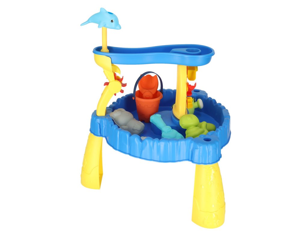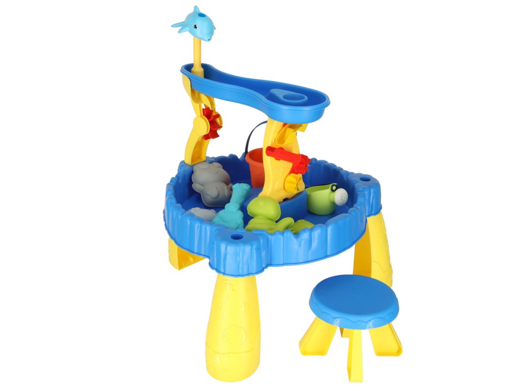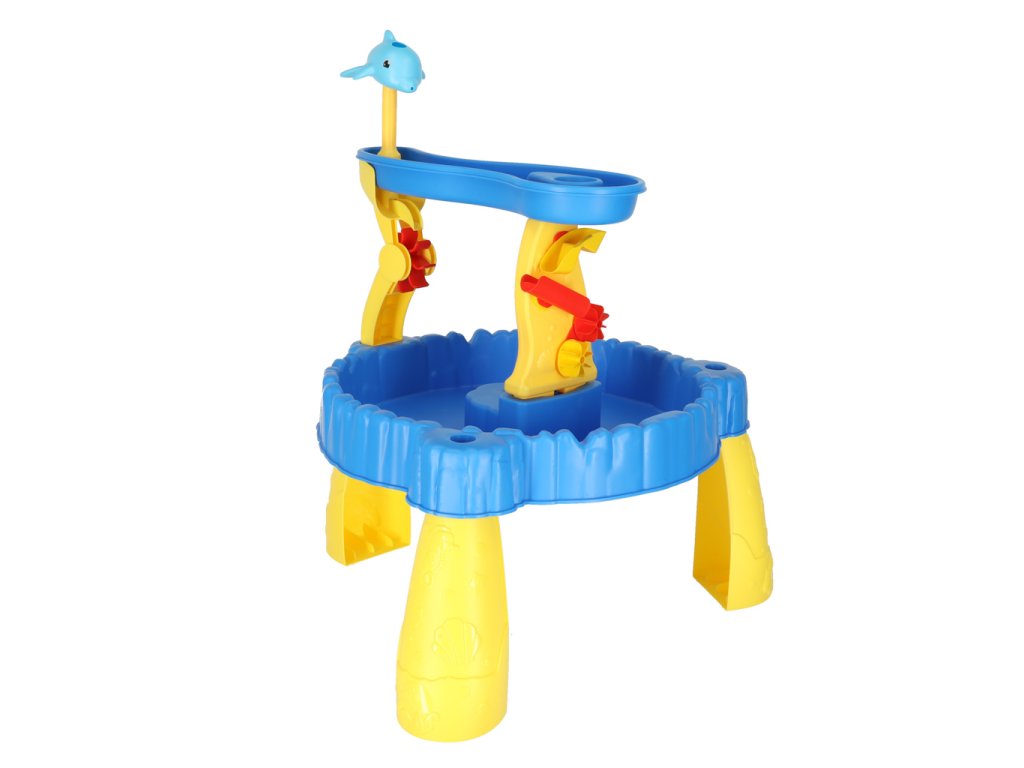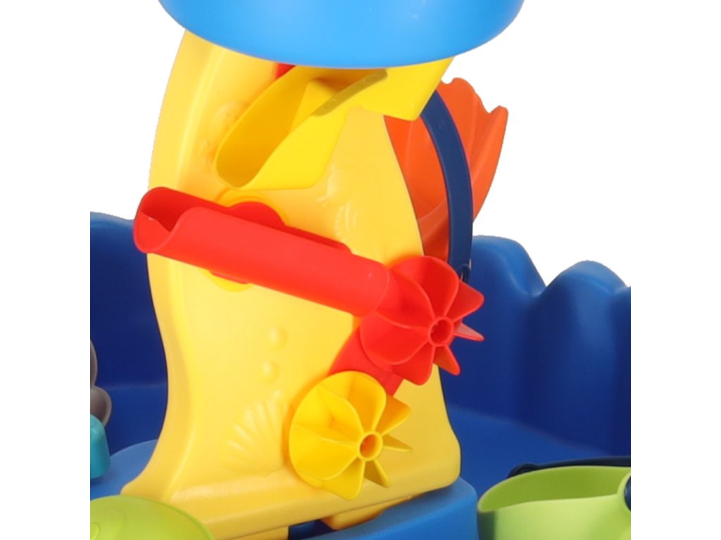 Je možné kombinovat fontánu a pískoviště? Rozhodně - dětský stolek s vodou je toho dokonalým příkladem. Stůl je dodáván s lopatkou, hrabičkami, kyblíkem, konví a formičkami, které obohatí hru doma i na pláži.