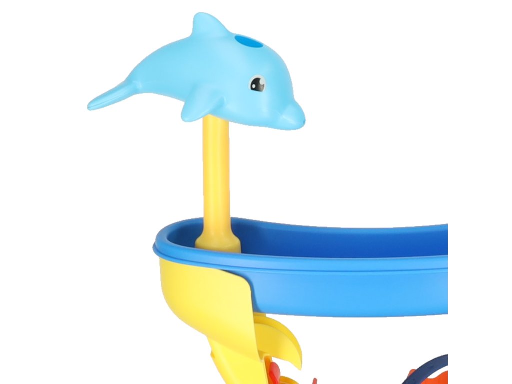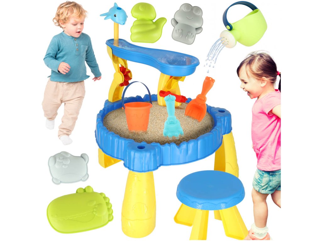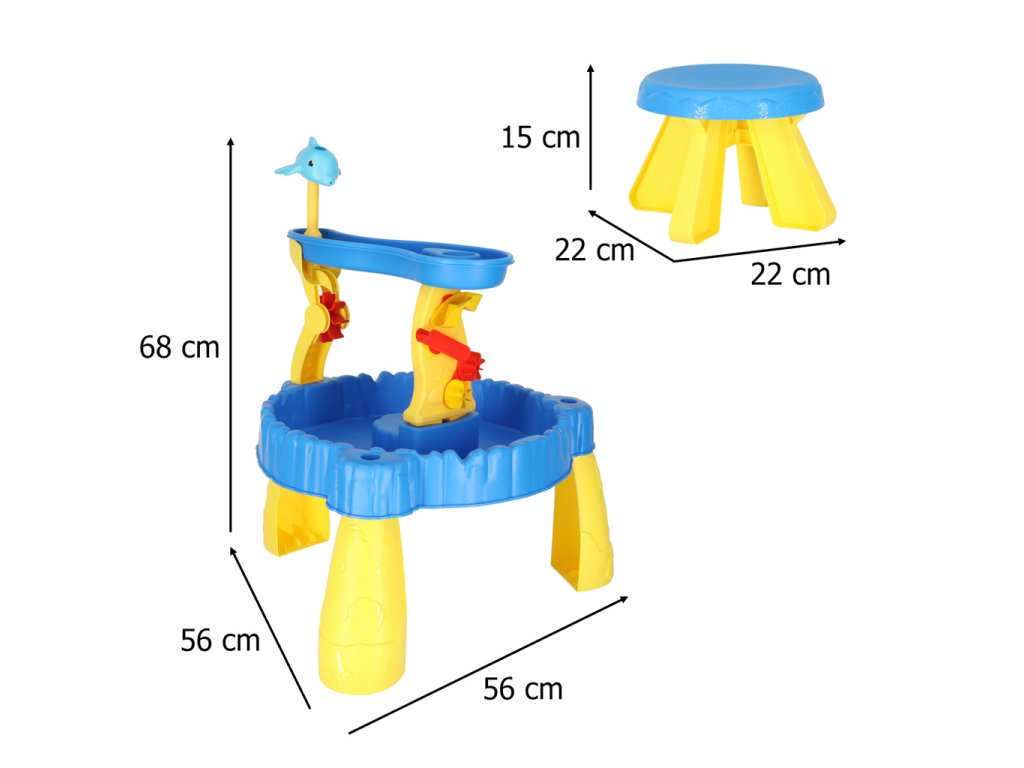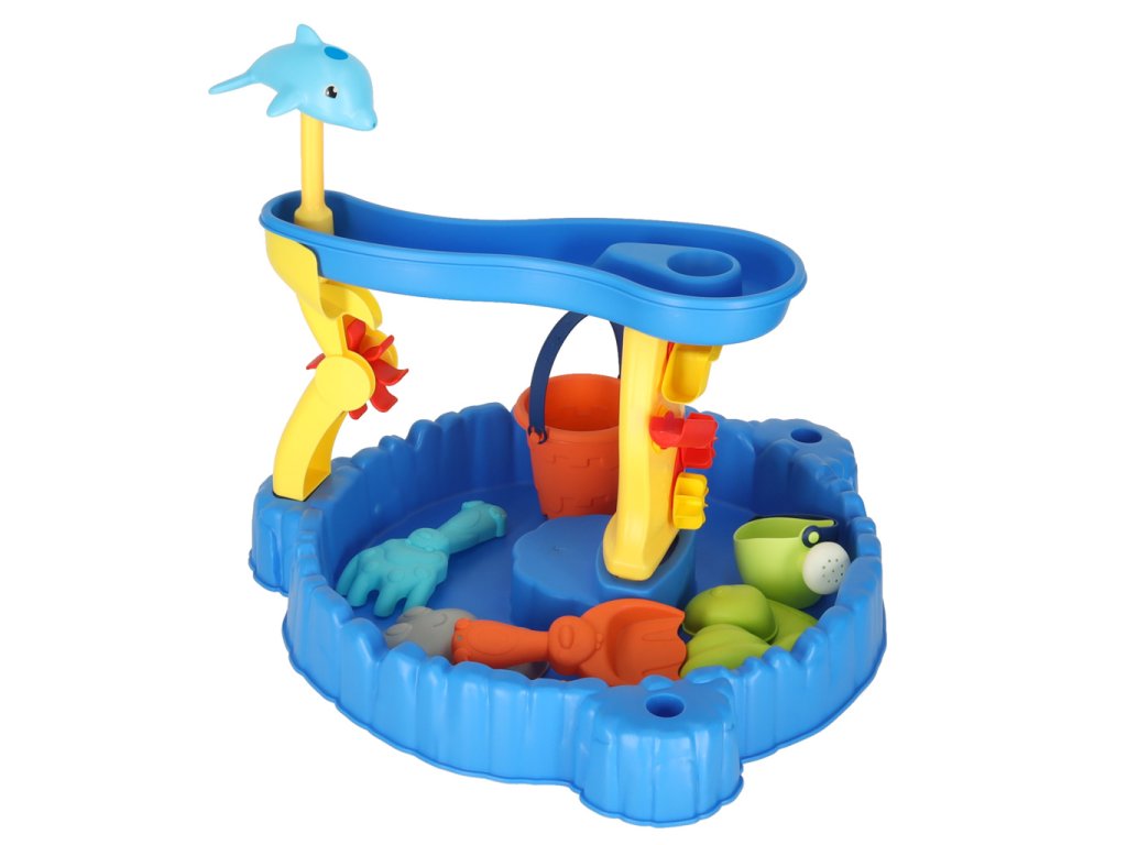 Je možné kombinovat fontánu a pískoviště? Rozhodně - dětský stolek s vodou je toho dokonalým příkladem. Stůl je dodáván s lopatkou, hrabičkami, kyblíkem, konví a formičkami, které obohatí hru doma i na pláži.