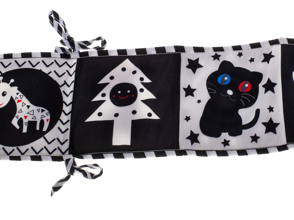 Knížka ve tvaru harmoniky je ideální jako ochranná podložka do postýlky. K příčkám ji lze připevnit pomocí provázku.