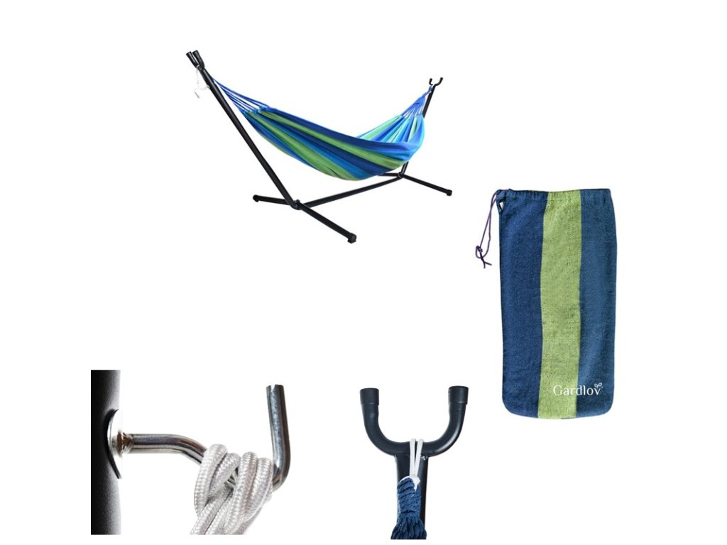 - OCELOVÝ RÁM – houpací síť má rám vyrobený z kvalitní práškově lakované oceli. Vyznačuje se vysokou odolností vůči povětrnostním vlivům. Jeho stabilní základna a zesílená konstrukce zajišťují nejen komfort a pohodlí, ale také bezpečnost. Jeho maximální nosnost je až 200 kg! V rámu jsou 4 otvory, do kterých lze zasunout háček a nastavit tak výšku houpací sítě.