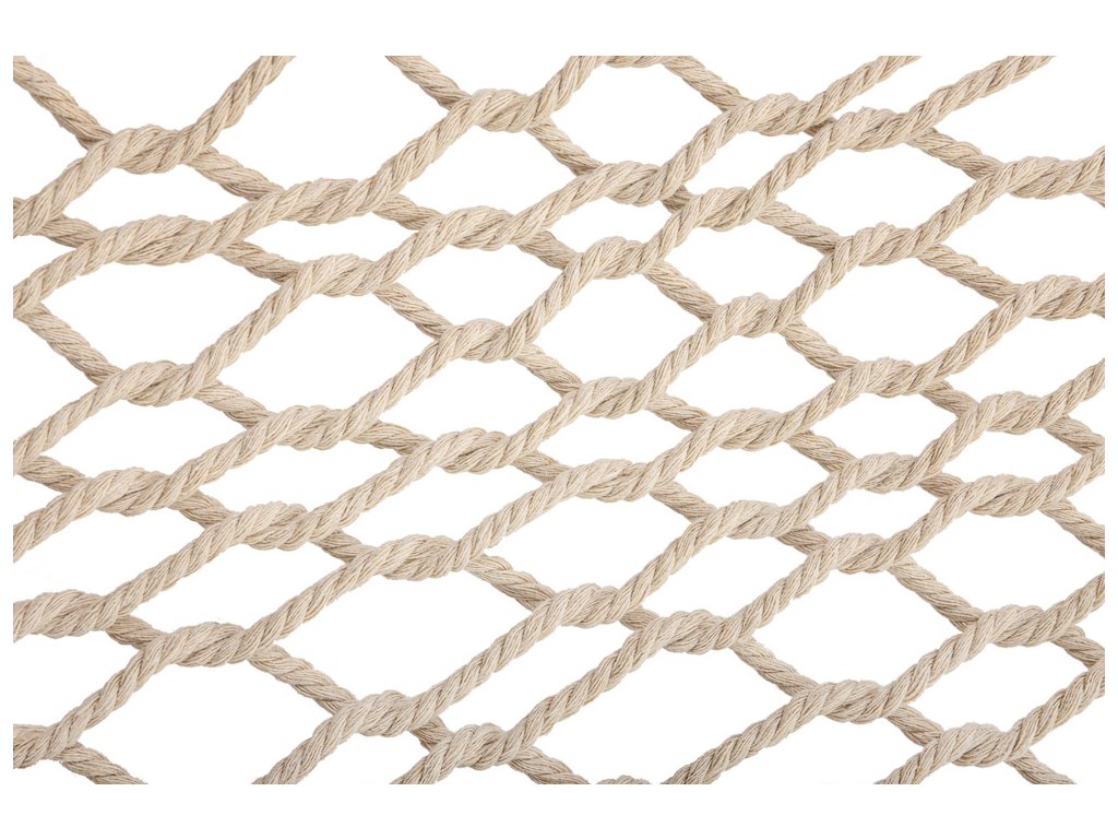 Houpací síť je vyrobena z hustě tkaných bavlněných provazů (65 %), které jí dodávajívysokou odolnost. Snadno unese hmotnost až 250 kilogramů. Světle béžová barva a střapce na okrajích jí dodávají elegantní vzhled, který skvěle zapadne do každého zahradního prostředí. Houpací síť je zavěšena na 100 centimetrů širokém dřevěném rámu, který zajišťuje dostatečnou stabilitu a pohodlí. Po srolování zabírá velmi málo místa, takže se snadno skladuje.